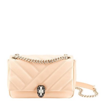 【包税】BVLGARI/宝格丽 SERPENTI CABOCHON系列女士蜜桃色绗缝小牛皮浅金镀金黄铜黑白珐琅经典蛇首扣单肩包斜挎包链条包女包 290612