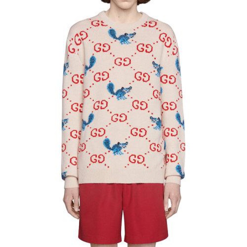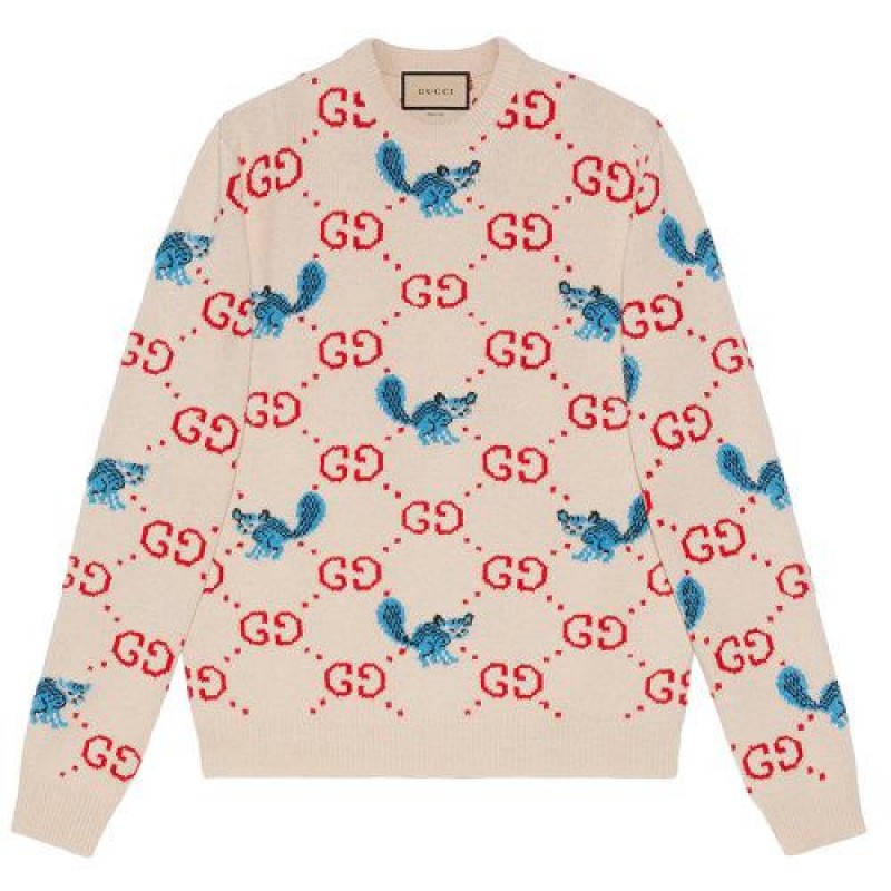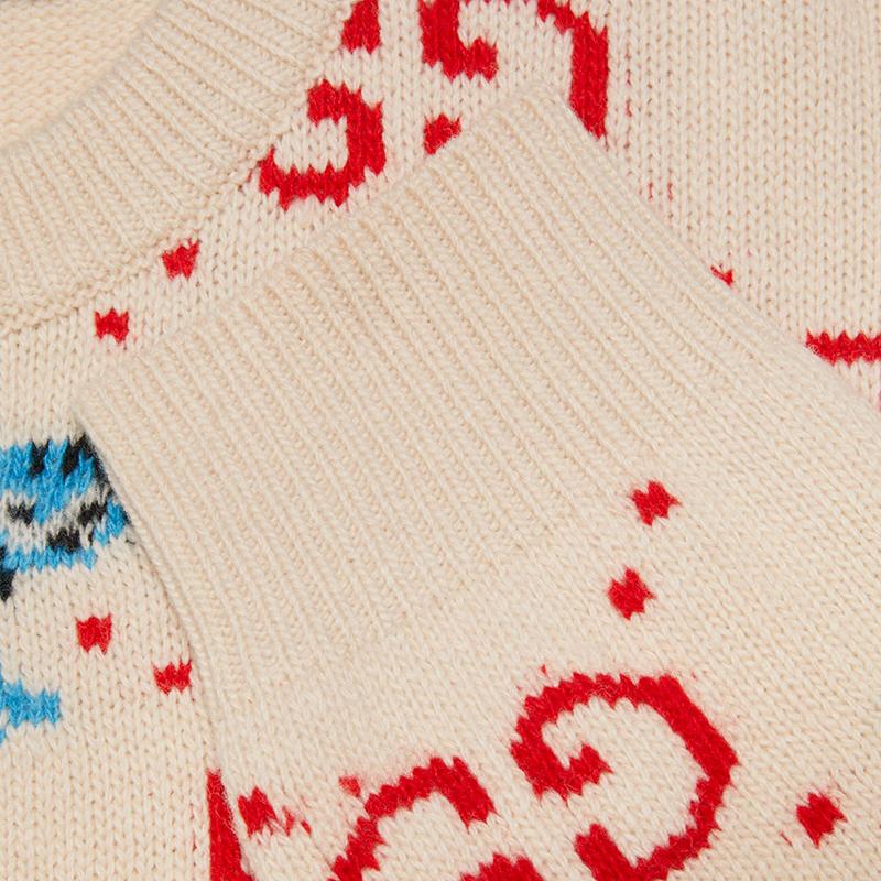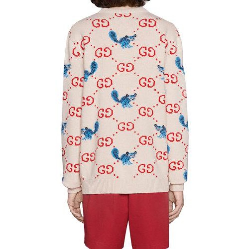 【包税】预订款1-2周 GUCCI/古驰 21年早秋新款 Freya Hartas系列 男士象牙色和红色动物印花羊毛毛衣661836XKBXX9275