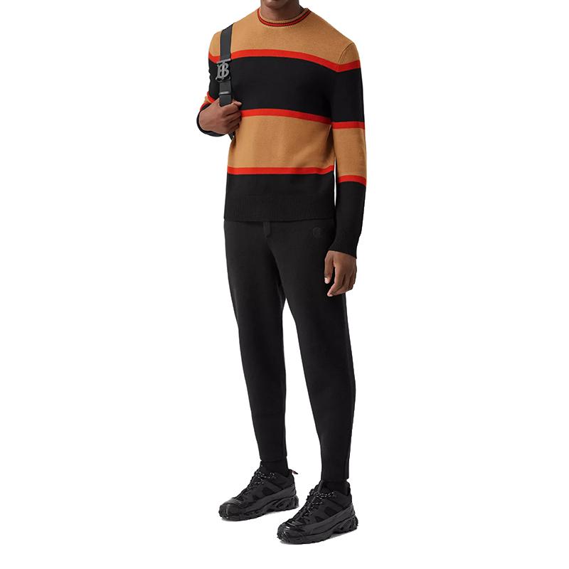 【包邮包税】BURBERRY/博柏利 巴宝莉男装 男士拼色条纹羊毛混纺时尚圆领秋冬针织衫/毛衣 80359221