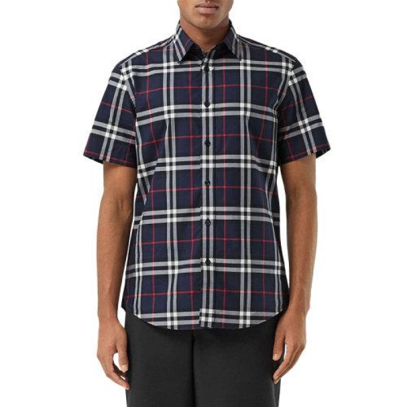 BURBERRY/博柏利 男装 服饰 21春夏 棉质经典格纹翻领衬衣 男士短袖衬衫 $508.3 |
