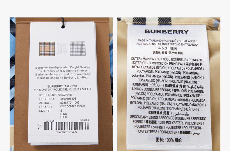BURBERRY/博柏利 男士夹克蓝色尼龙徽标拼Vintage格纹连帽外套 8038770 $1457.1 |