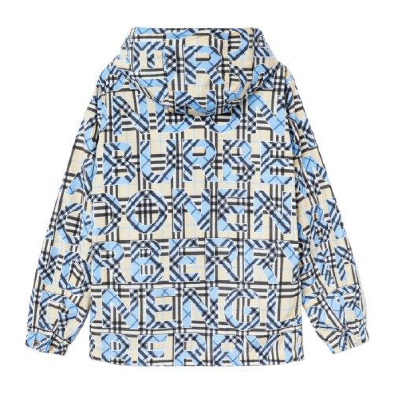 BURBERRY/博柏利 男士夹克蓝色尼龙徽标拼Vintage格纹连帽外套 8038770