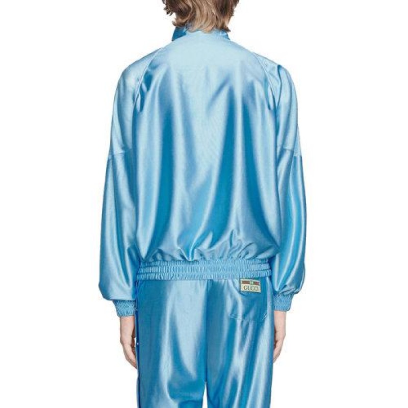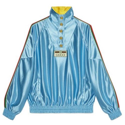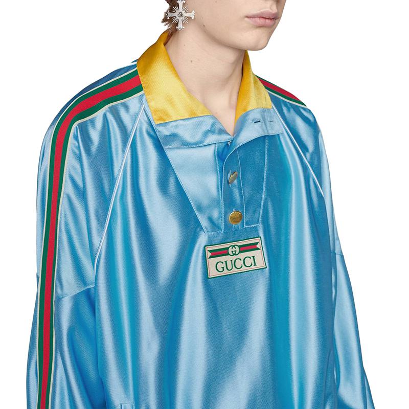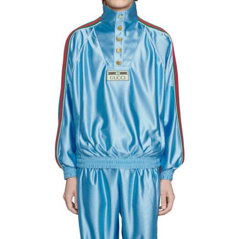 【包税】预订款1个月 GUCCI/古驰 21年早秋新款 Opening系列 男士浅蓝色闪亮技术涤纶平纹针织运动衫653372XJDE64670