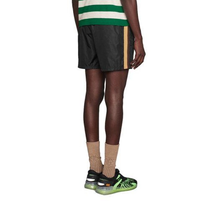 【包税】GUCCI/古驰 21年春夏新款 男士黑色GG提花防水尼龙侧条纹短裤599585XHAC21082