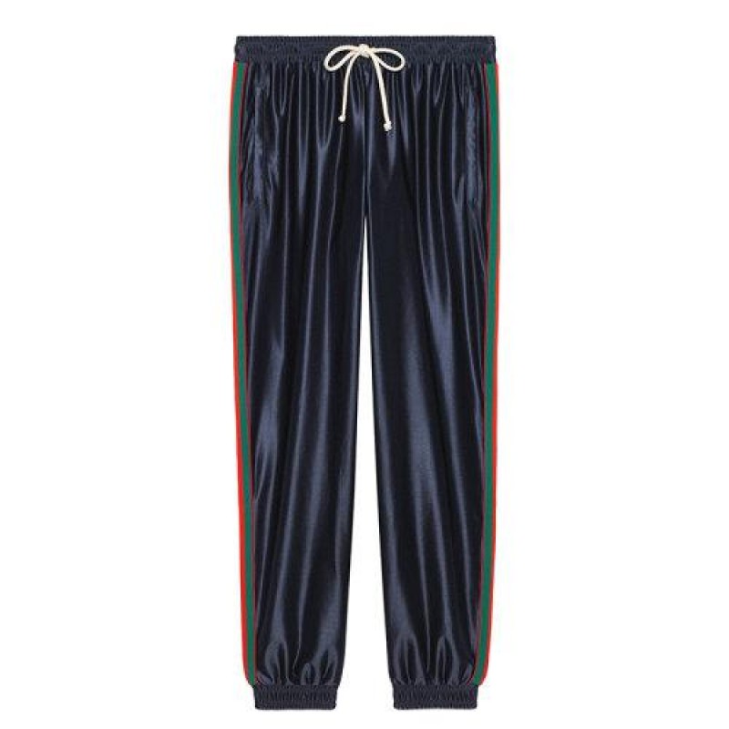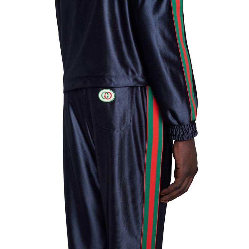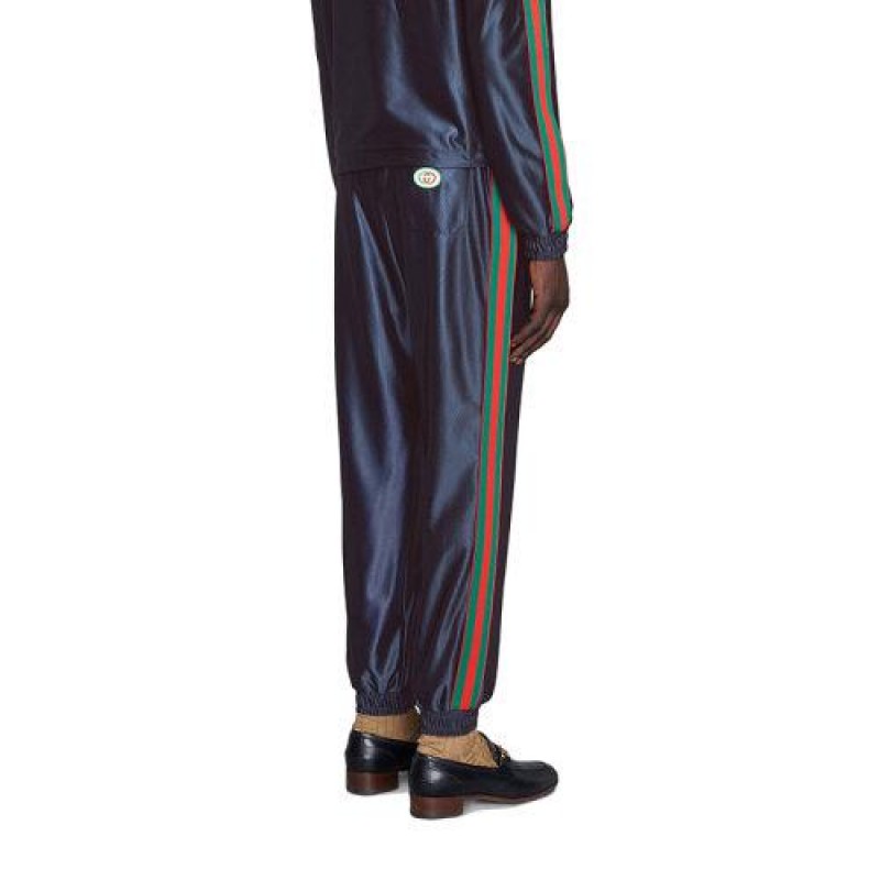 【包税】预订款1-2周 GUCCI/古驰 21年早秋新款 Opening系列 男士蓝色闪亮科技涤纶平纹针织运动裤655343XJDF14330