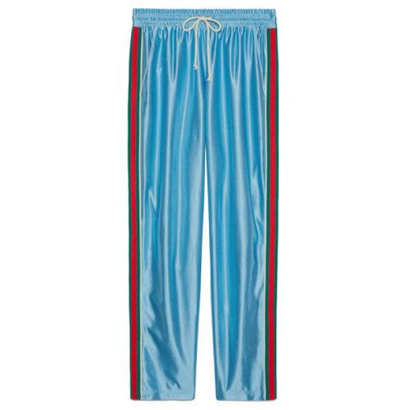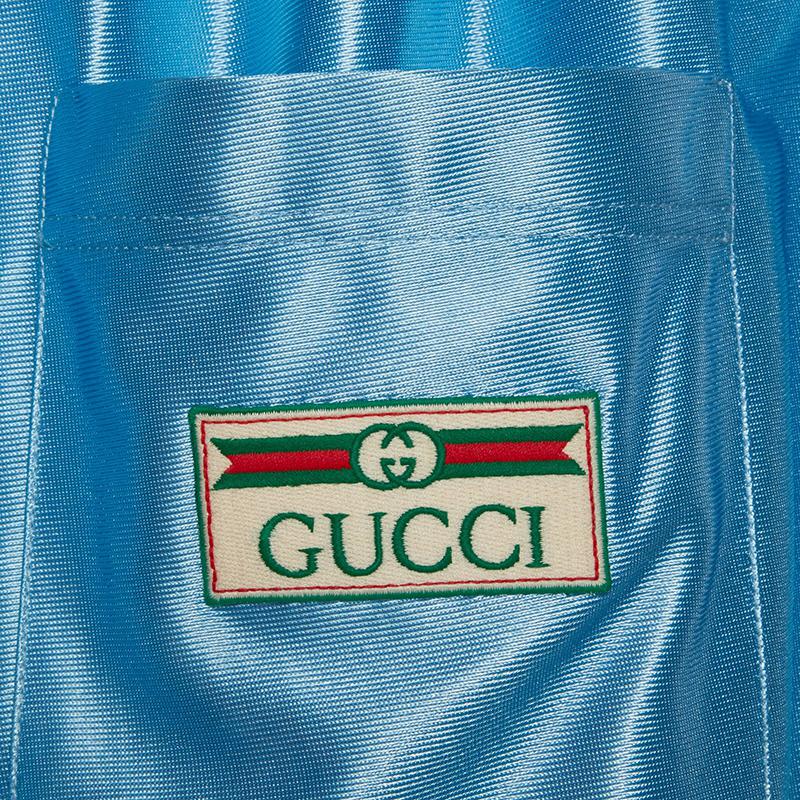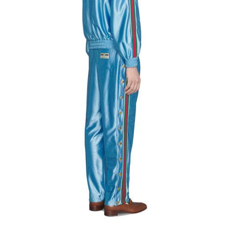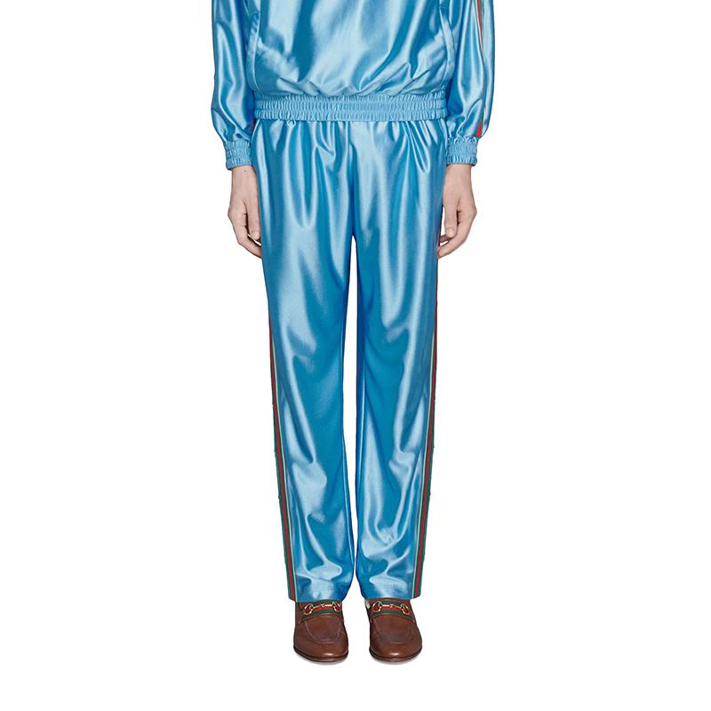 【包税】预订款1个月 GUCCI/古驰 21年早秋新款 Opening系列 男士浅蓝色闪亮技术涤纶平纹针织运动裤654748XJDE64670