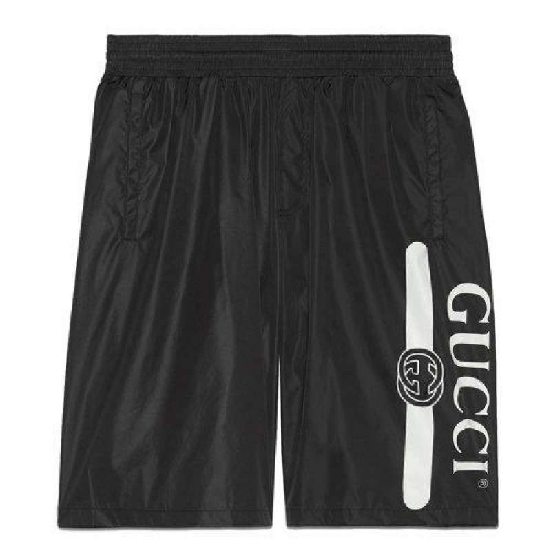 【包税】GUCCI/古驰 21年春夏新款 男士黑色防水尼龙Gucci徽标印花短裤627275XHAC31070
