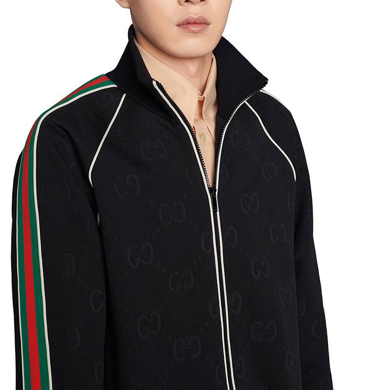 【包税】GUCCI/古驰 21年早秋新款 男士黑色GG提花针织拉链外套662270XJDE91043