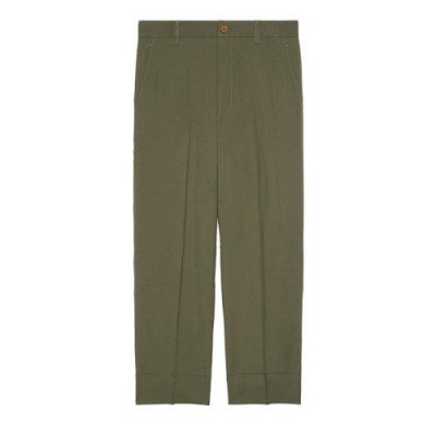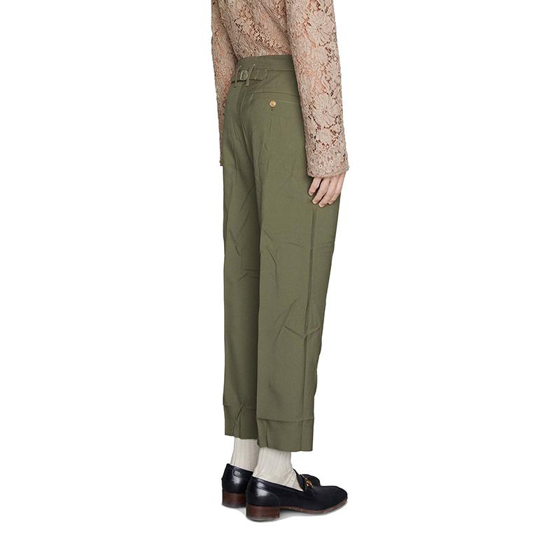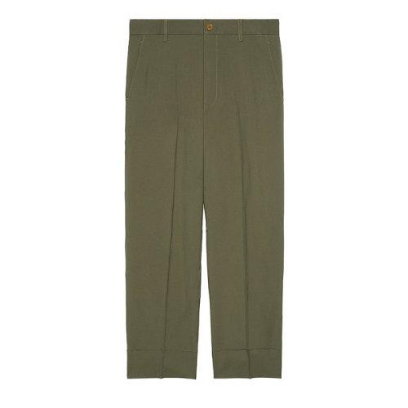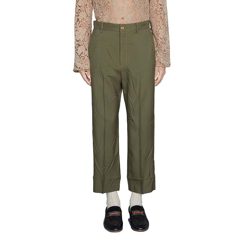 【包税】GUCCI/古驰 21年早秋新款 男士绿色羊毛Gucci徽标褶皱华达呢长裤660567ZAE3S3364