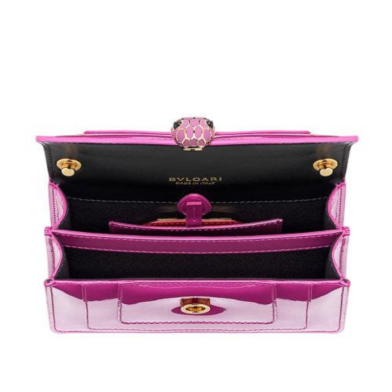 【包税】BVLGARI/宝格丽 2021春夏中国农历新年特别款SERPENTI FOREVER系列 女士迷你紫红色小牛皮金色黄铜哑光珐琅黑玛瑙单肩斜挎包290814