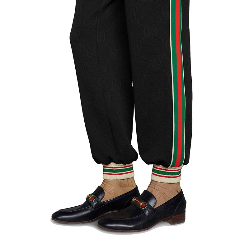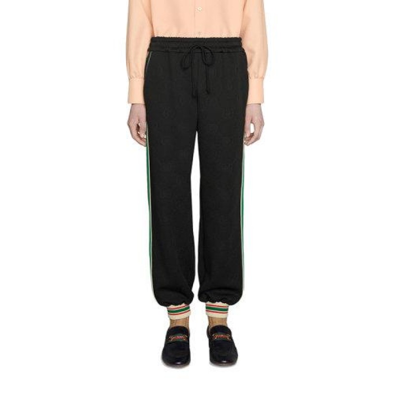 这款球衣慢跑裤融合了房屋的几种标志性色彩,例如纯黑色,绿色和红色,其灵感来自复古运动服,并具有宽松的剪裁感。GG提花从运动角度重新审视历史徽标,丰富了轮廓。