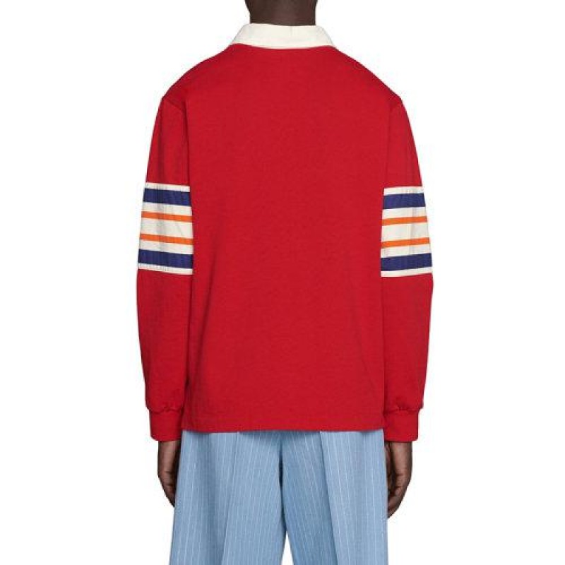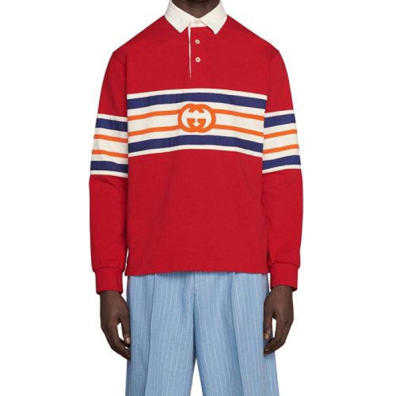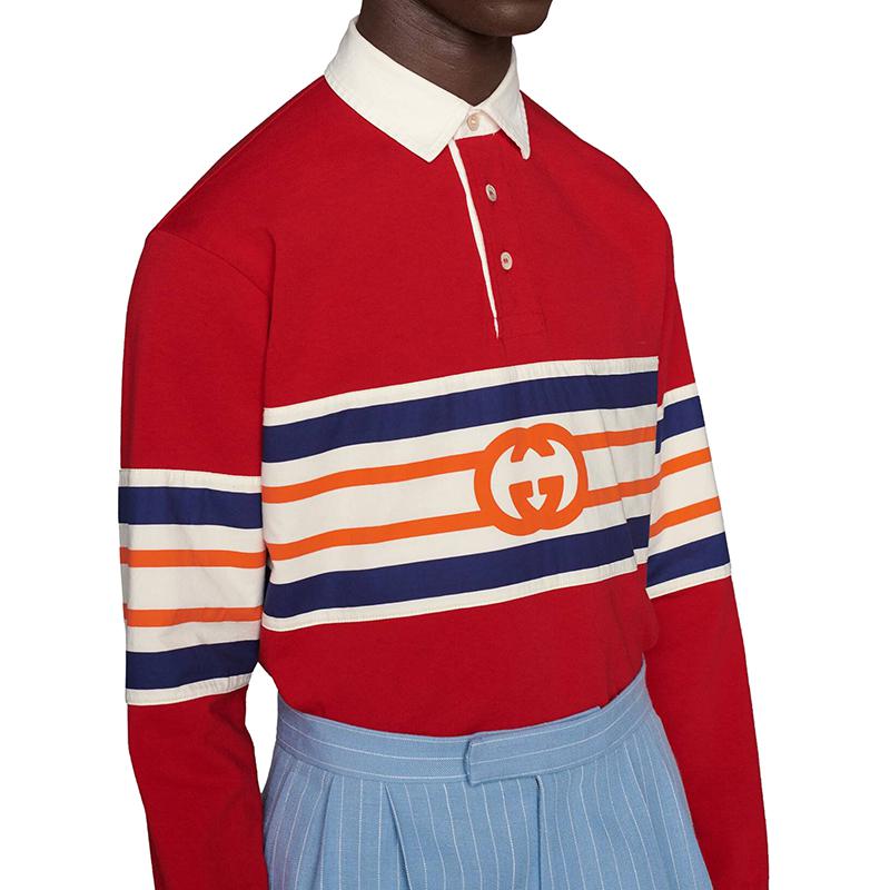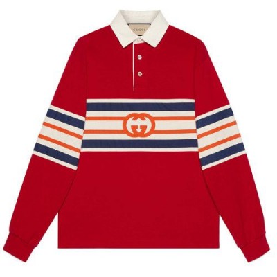 【包税】GUCCI/古驰 21年早秋新款 男士亮红色棉质GG图案平纹针织马球风格运动衫653379XJDGH6429