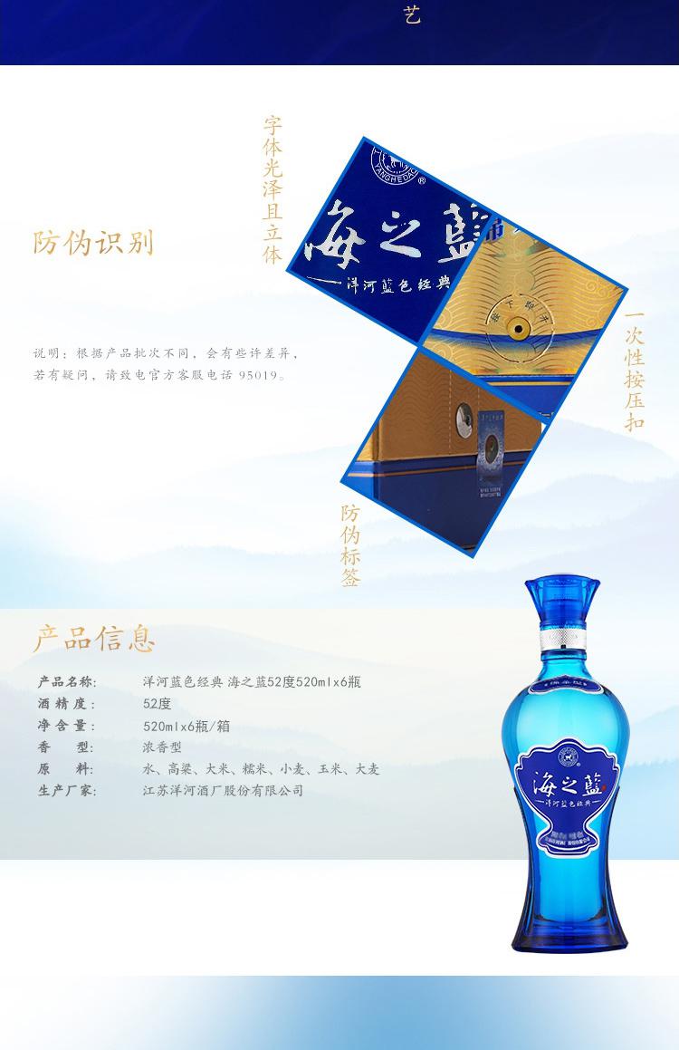 Yanghe Blue Classic Sea Blue 52 degrees 520ml * 6 bottles in a full box