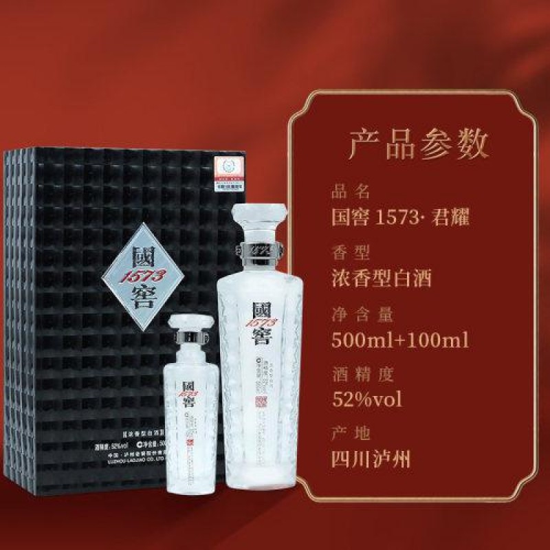 [Official flagship store] National Cellar 1573 official flagship store Luzhou flavor Baijiu collection Junyao series 52 degrees (500ml+100ml)