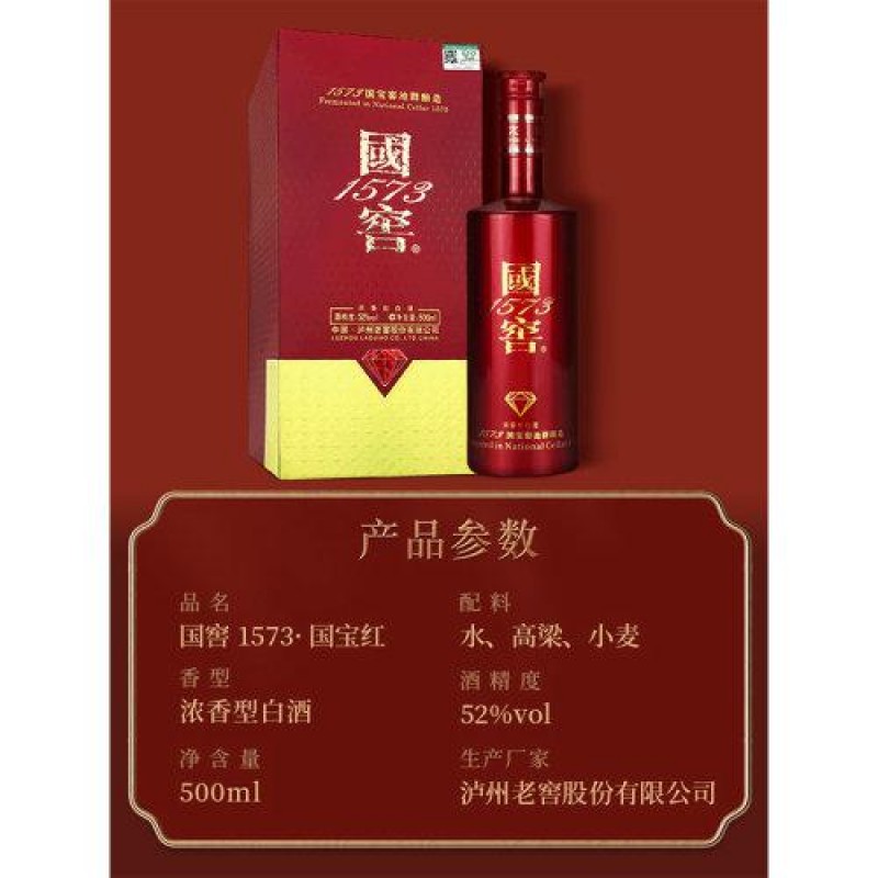 【官方旗舰店】泸州老窖 国窖1573 国宝红 52度500ml 浓香型高度 白酒 中秋送礼