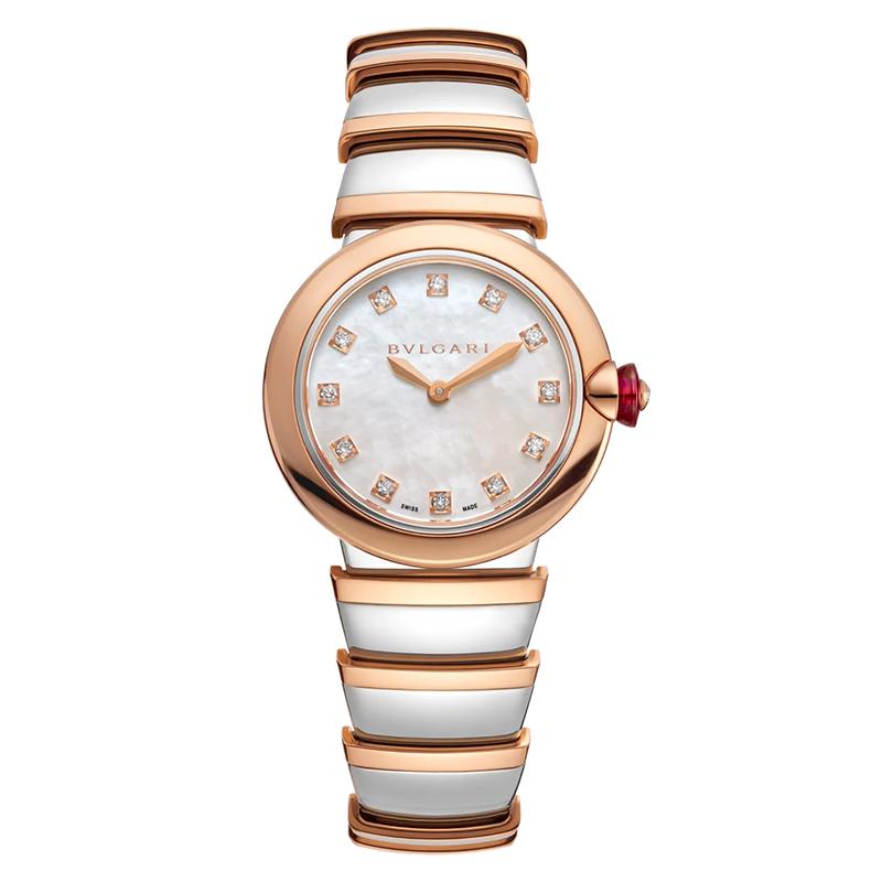 【 Tax included 】 Book 2-3 weeks BVLGARI/Bulgari 18K gold rose gold and stainless steel case and bracelet with white mother of pearl dial and diamond studded hour markers LVCEA quartz watch 28mm 102194