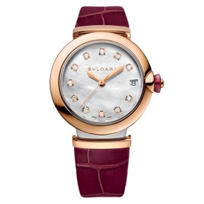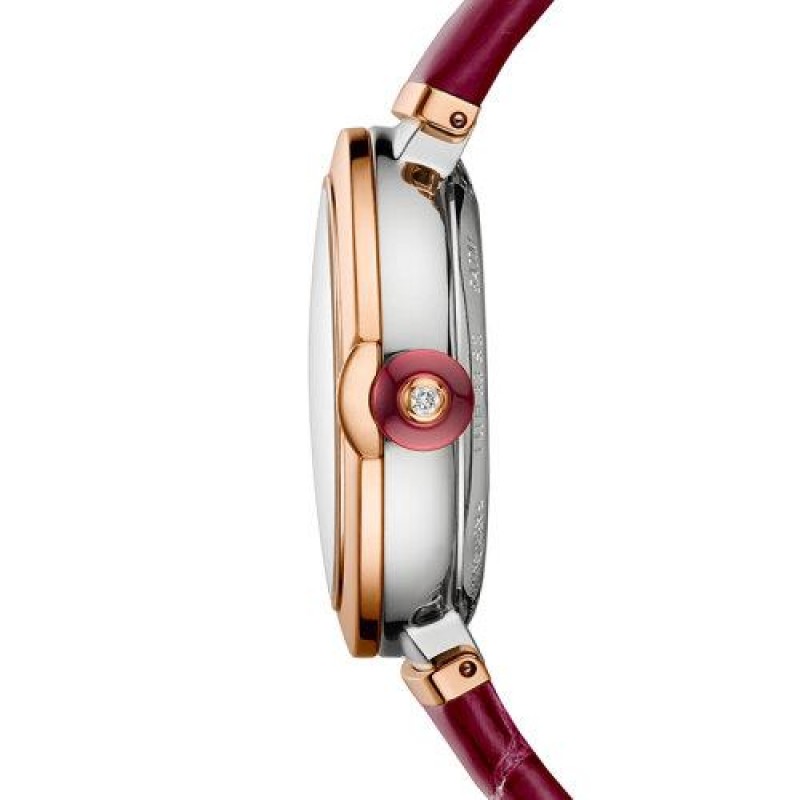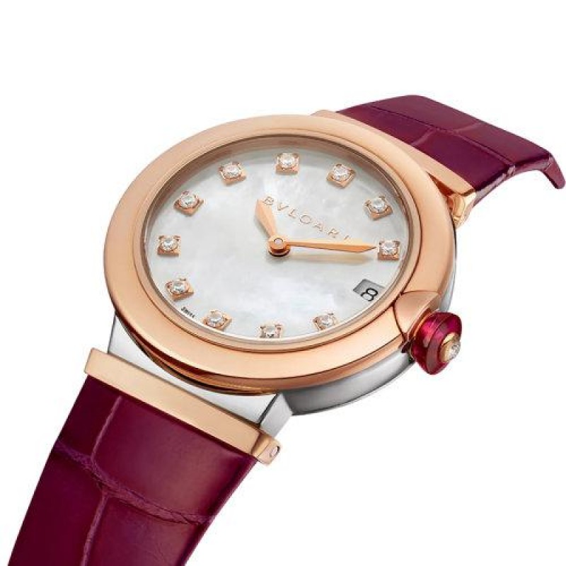 【 Tax included 】 Book 2-3 weeks BVLGARI/Bulgari 18K gold rose gold and stainless steel case with white mother of pearl dial, diamond studded hour markers, date window and Burgundy crocodile leather strap LVCEA automatic mechanical watch 33mm 102639