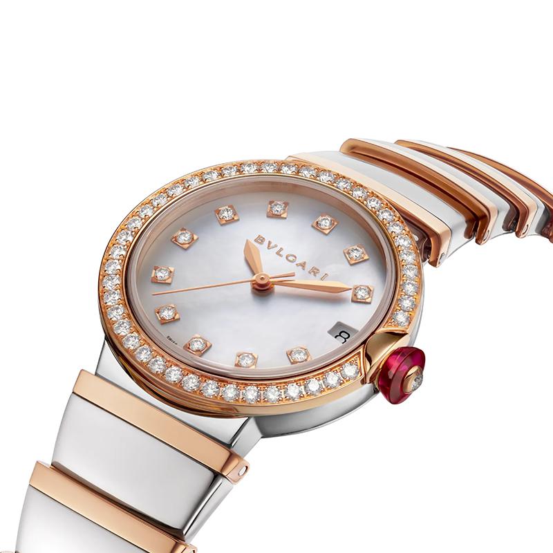 【包税】预定2-3周 BVLGARI/宝格丽 表壳和表带由18 K金玫瑰金和不锈钢制成 表圈镶有钻石 白色珍珠母贝表盘镶有钻石 LVCEA自动机械手表 33毫米102476
