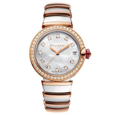 【 Tax included 】 Book 2-3 weeks BVLGARI/Bulgari case and strap made of 18K gold rose gold and stainless steel. The bezel is set with diamonds, white mother of pearl dial is set with diamonds, LVCEA automatic mechanical watch is 33mm, 102476