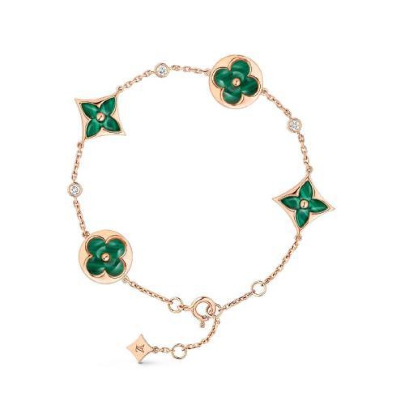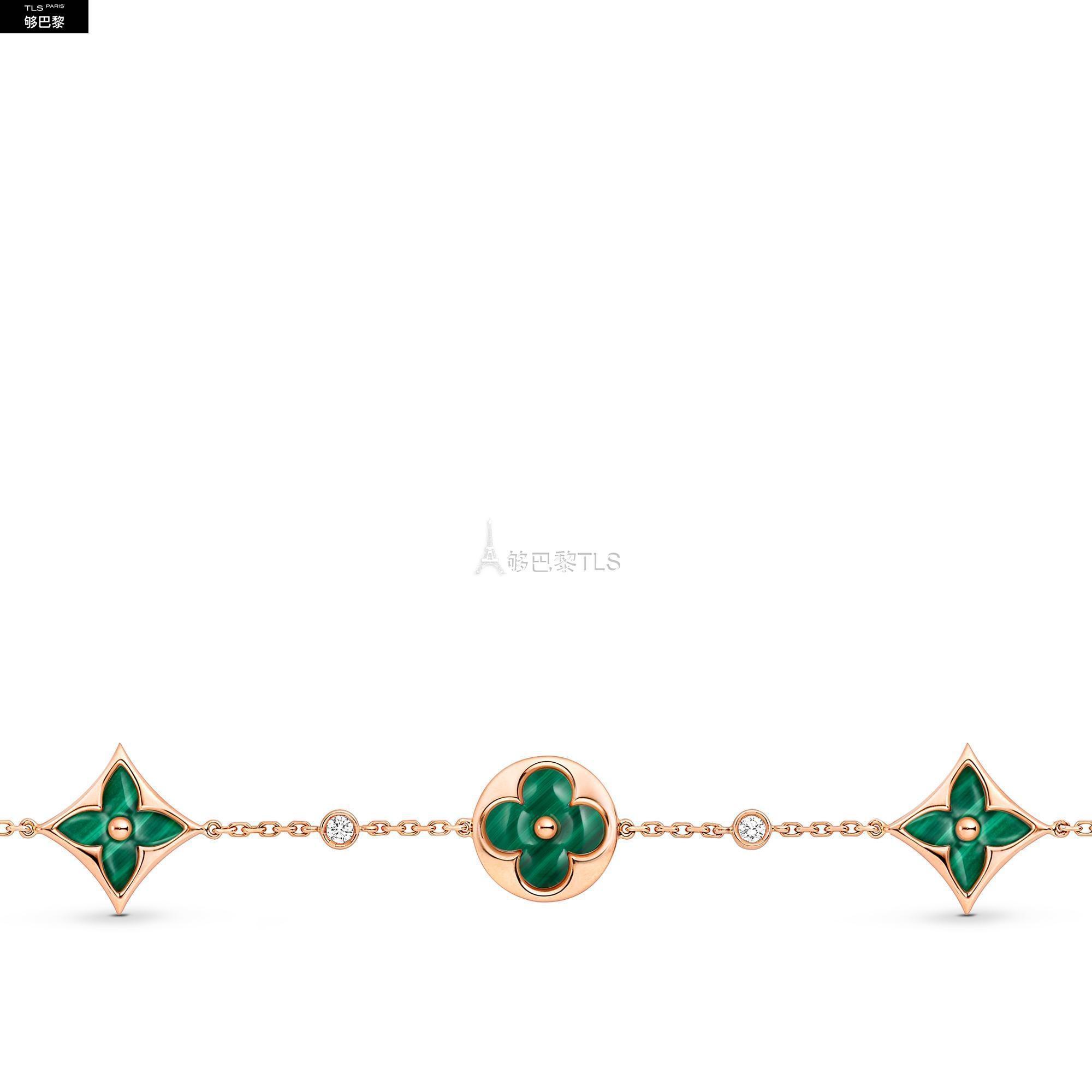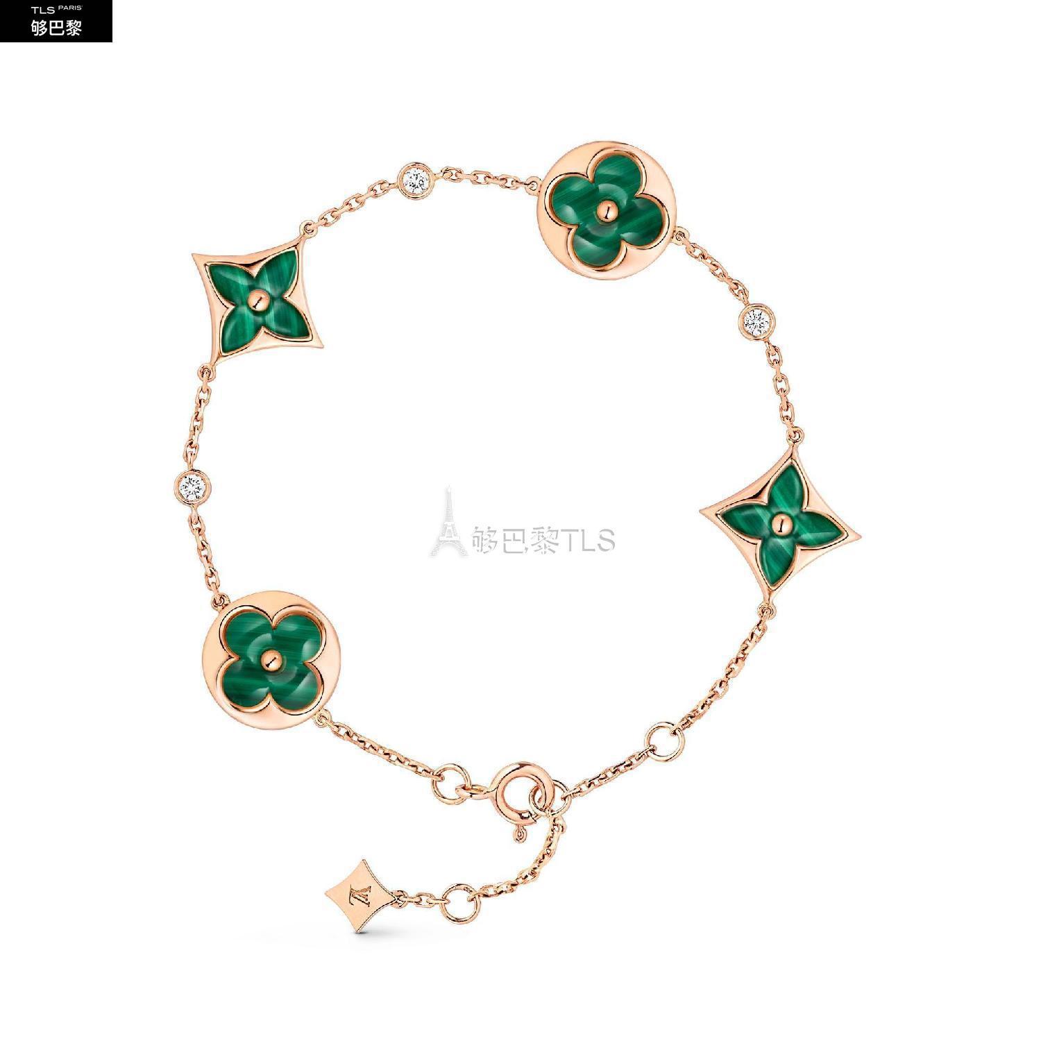 【包邮包税】 LV路易威登 21年春夏 女士 手链 BRACELET MULTI-MOTIFS COLOR BLOSSOM BB, OR ROSE, MALACHIT 预定商品1-3周发货