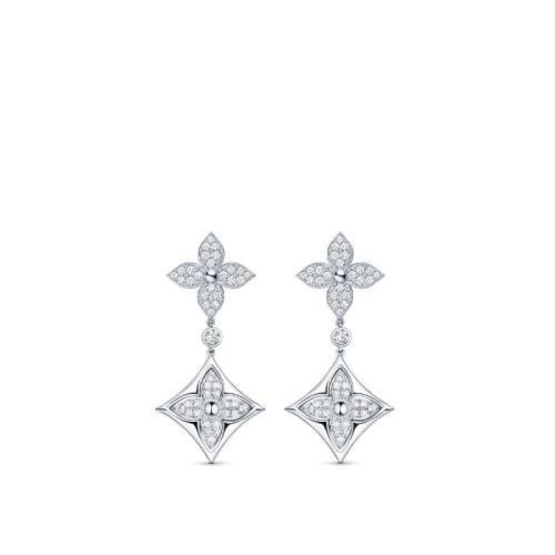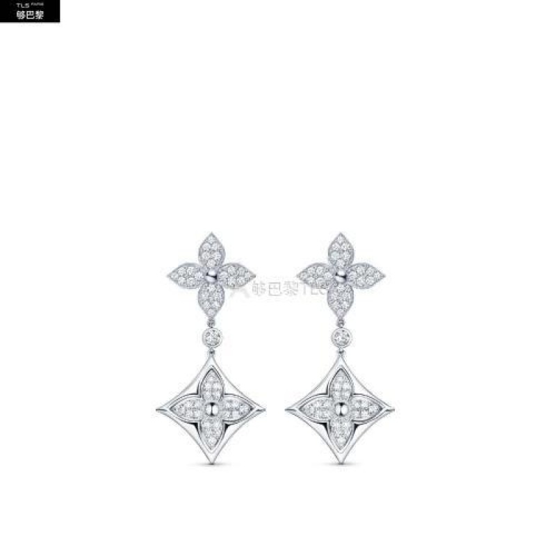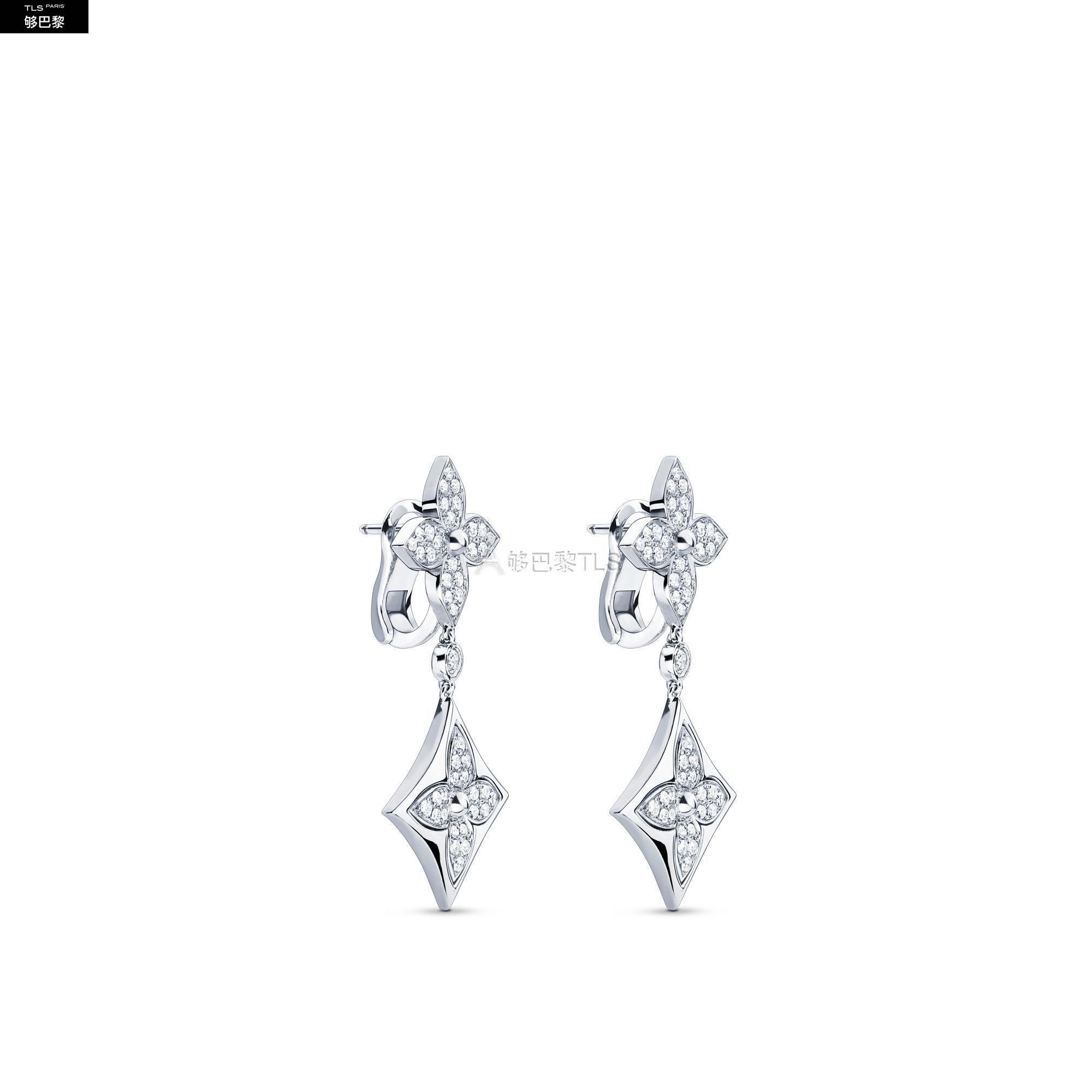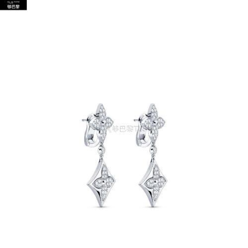 • 【包邮包税】 LV路易威登 21年春夏 女士 耳环 BOUCLES D%27OREILLES LONGUES COLOR BLOSSOM, OR BLANC ET DIA 预定商品1-3周发货