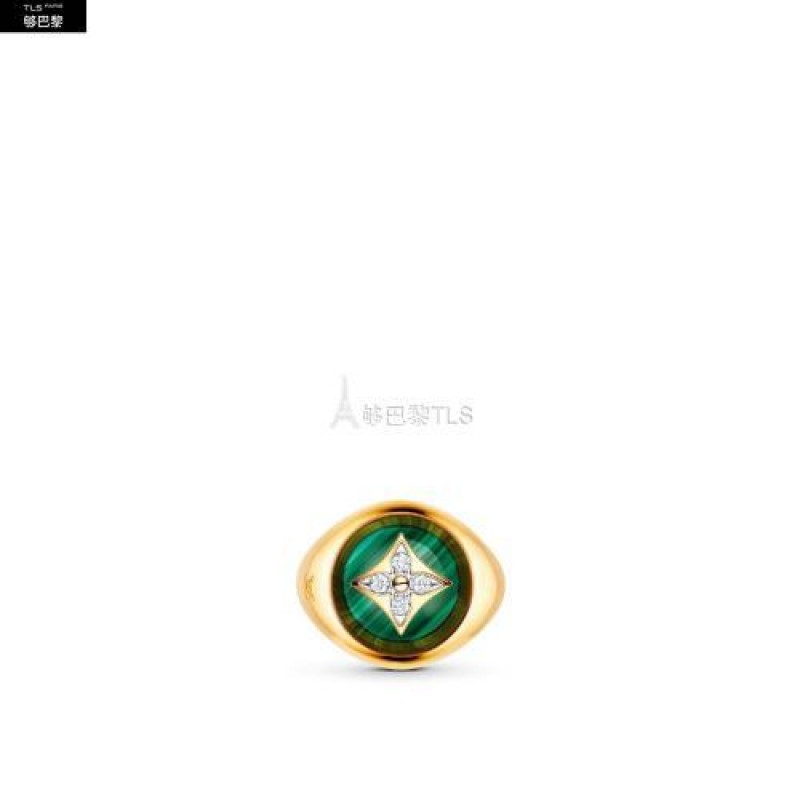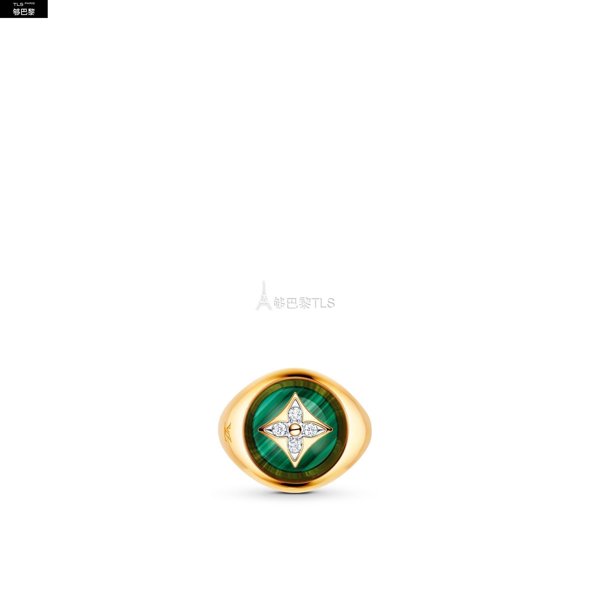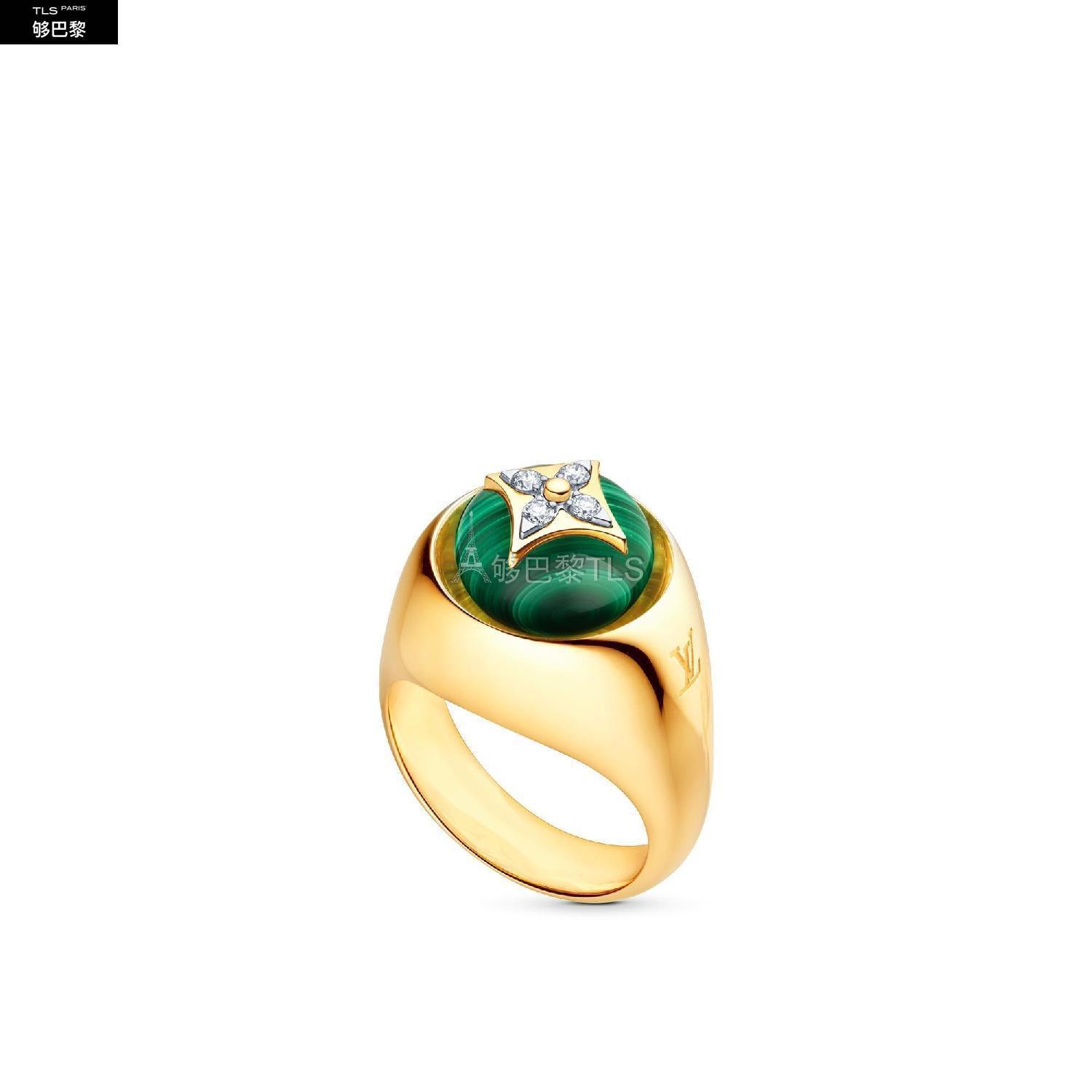 【包邮包税】 LV路易威登 21年春夏 女士 戒指 B BLOSSOM 1*w*8K 金孔雀石钻石图章戒指 Q9N50F Q9N50G Q9N50 预定商品1-3周发货