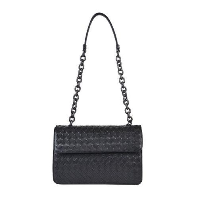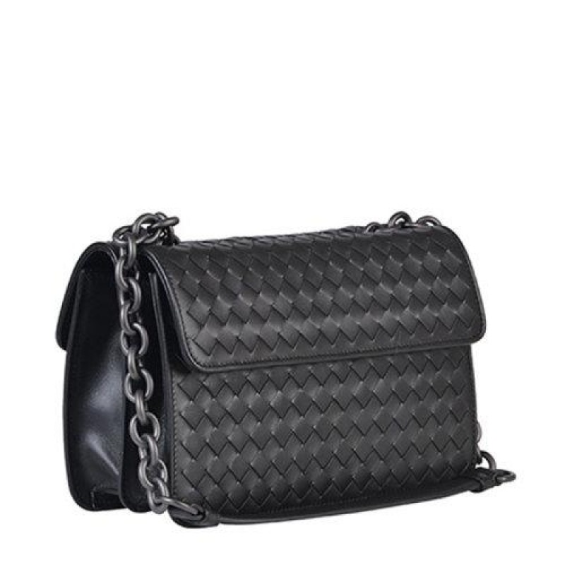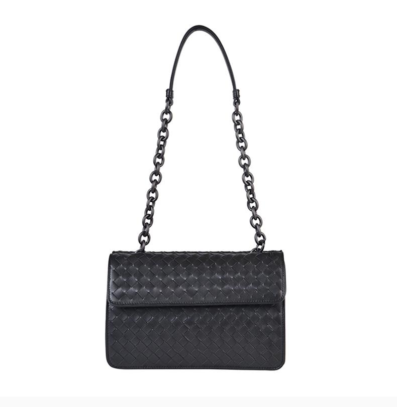 Bottega Veneta/葆蝶家 BV 女士黑色编织牛皮单肩包斜挎包女包 354756-V0016-8175