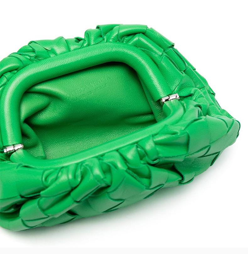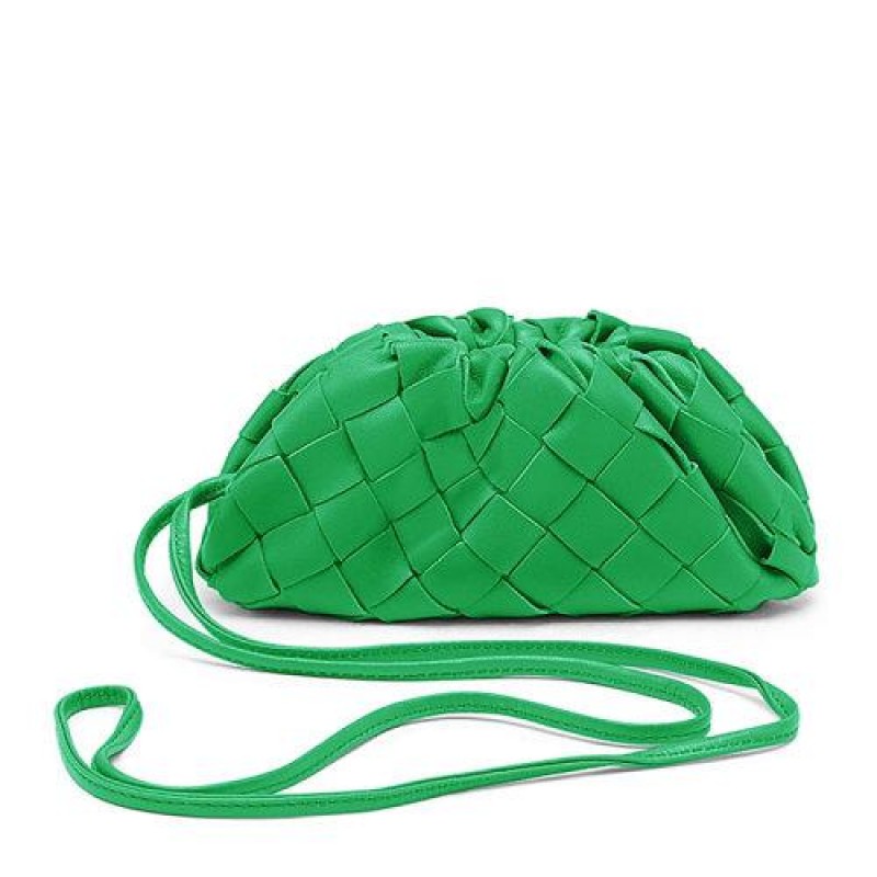 【包税】Bottega Veneta/葆蝶家 The Pouch系列mini女士草木绿小羊皮经典编织款单肩包斜挎包手拿包女包 577816-VCPP1-3719