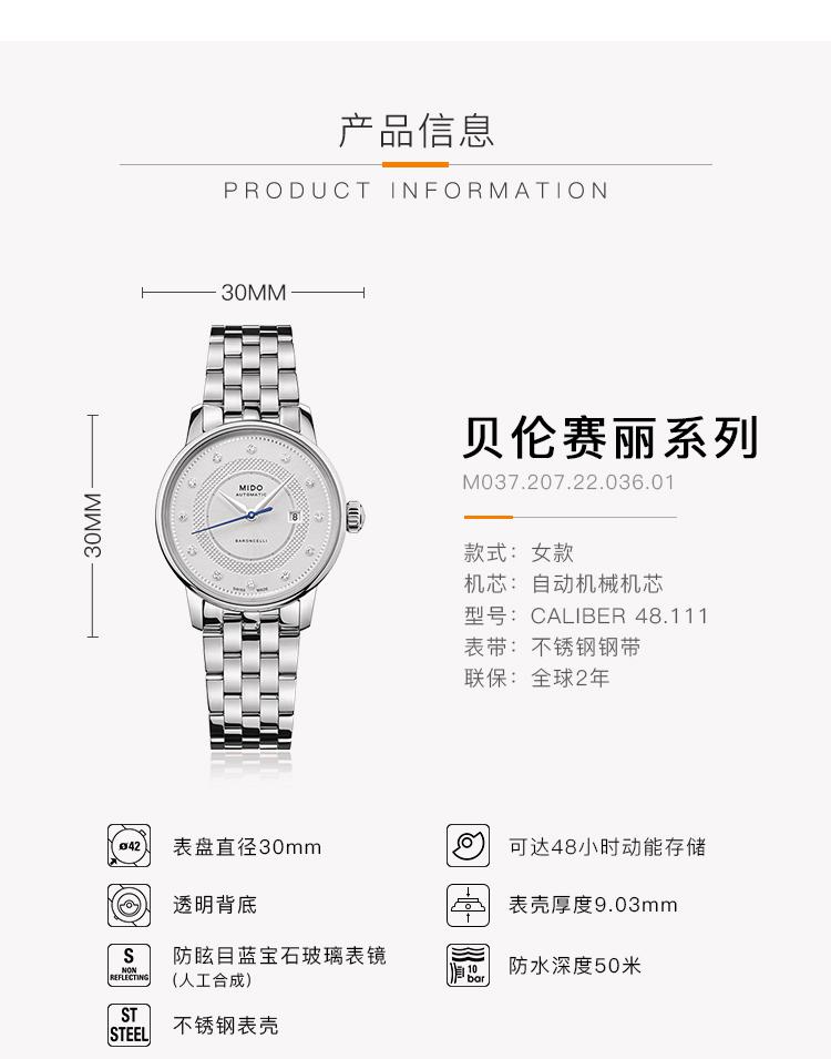 mido/美度 贝伦赛丽系列女士腕表M037.207.11.036.01