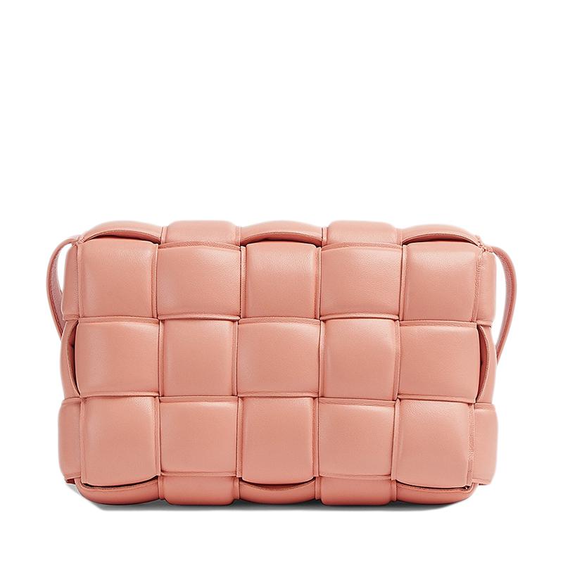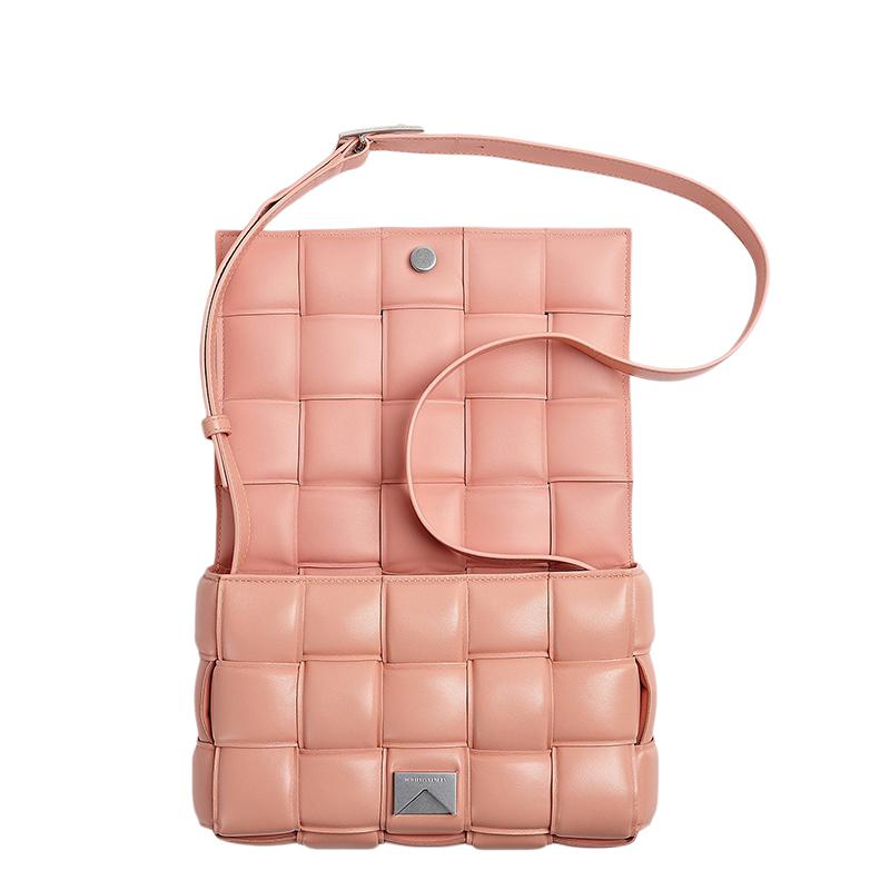 【包税】Bottega Veneta/葆蝶家 21春夏新款CASSETTE PADDED系列 女士蜜桃粉色小羊皮双面编织单肩斜挎豆腐包591970VCQR17806
