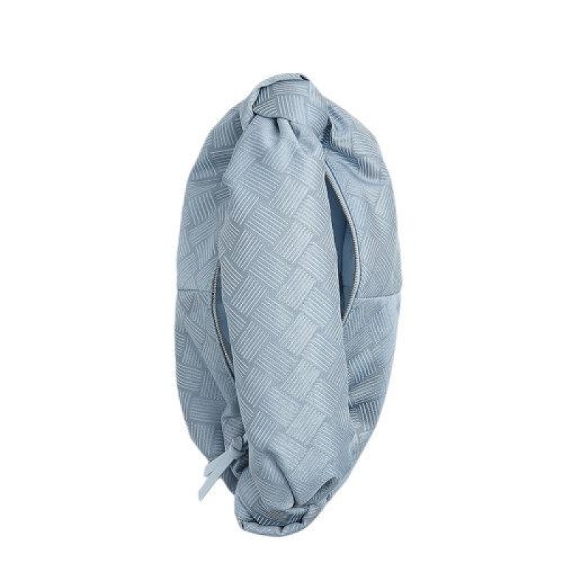 【包税】Bottega Veneta/葆蝶家 21新款DOUBLE KNOT系列 女士气泡蓝色织物牛皮革拉链打结手提包658049V0T414911