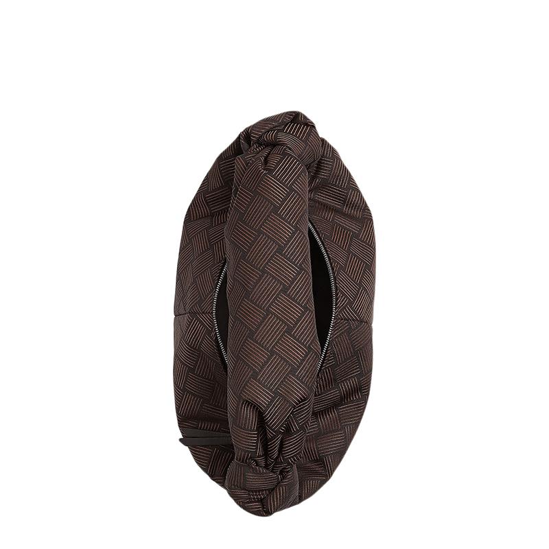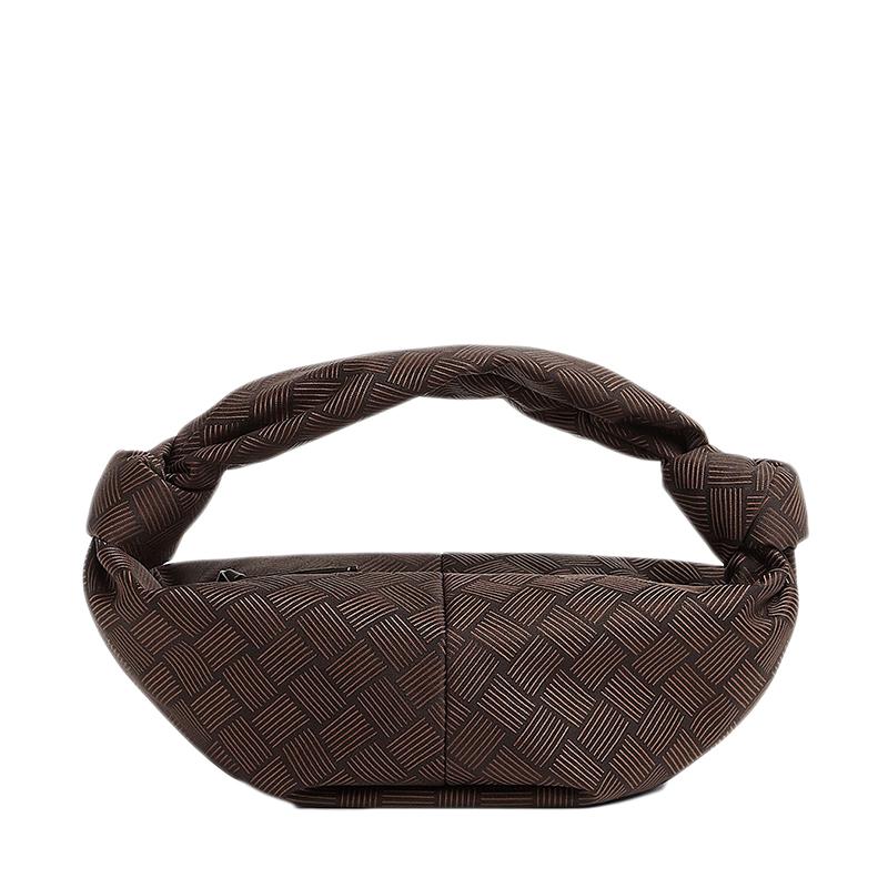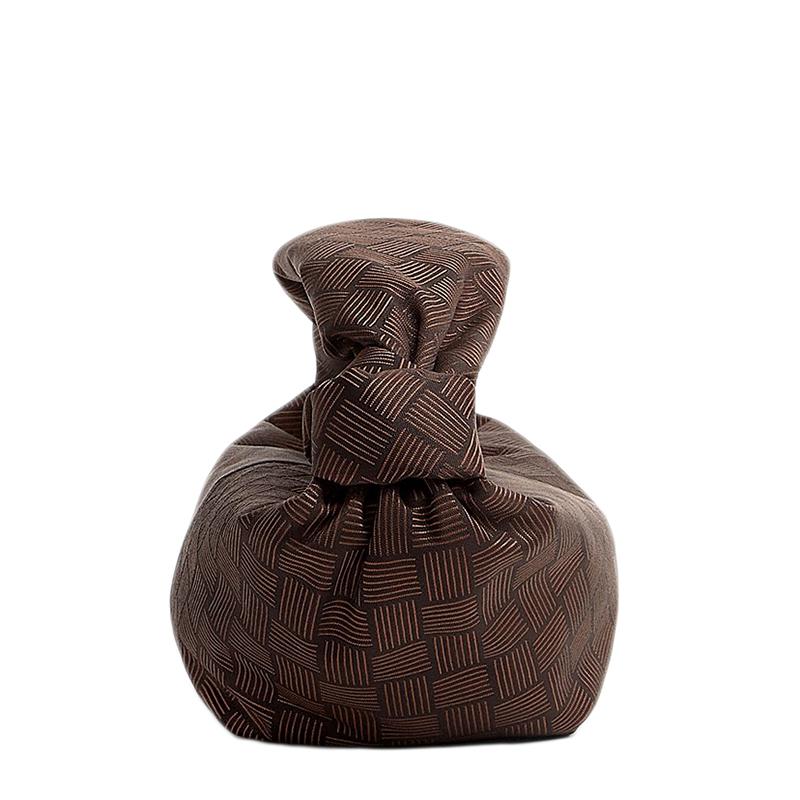 【包税】Bottega Veneta/葆蝶家 21新款DOUBLE KNOT系列 女士巧克力棕色织物牛皮革拉链打结手提包658049V0T412145