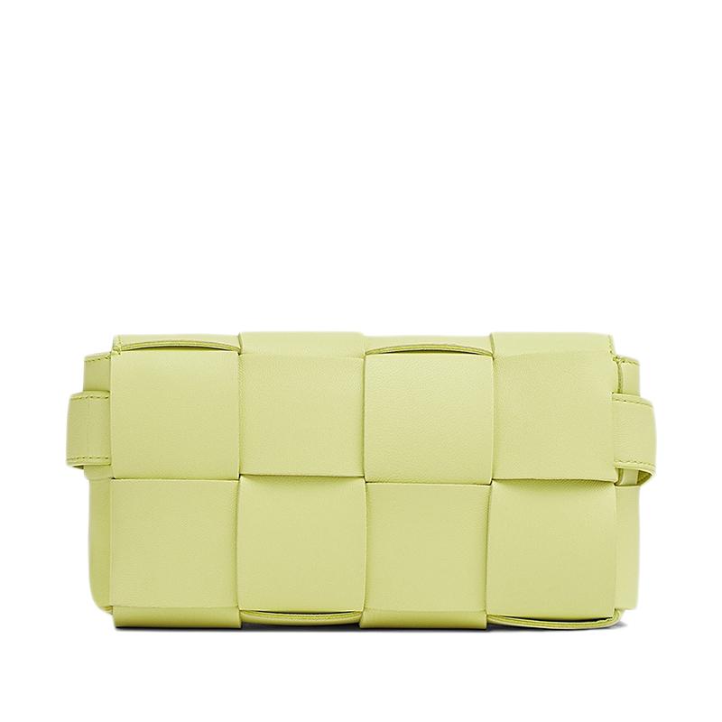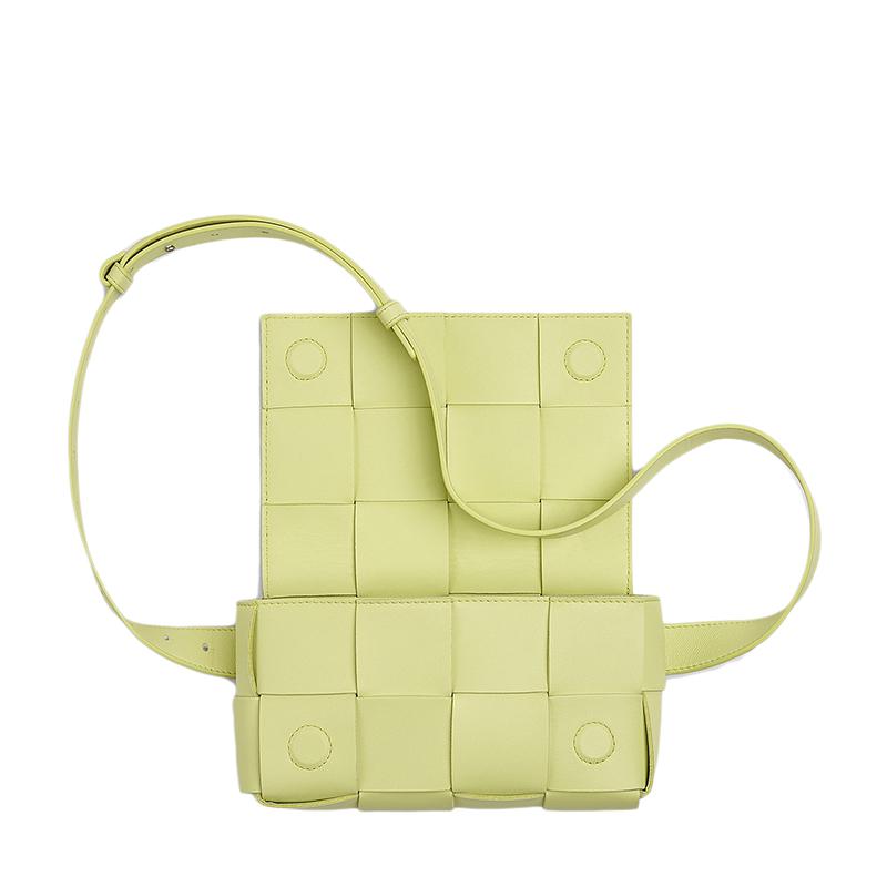 【 Tax included 】 Bottega Veneta/Bottega Veneta 21 new BELT CASSETTE series seagrass yellow Intrecciato woven lambskin diagonal cross waist bag 668572VMAY13458