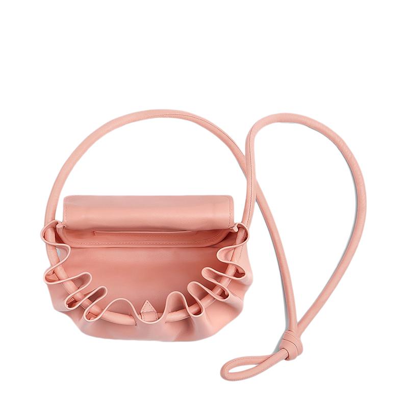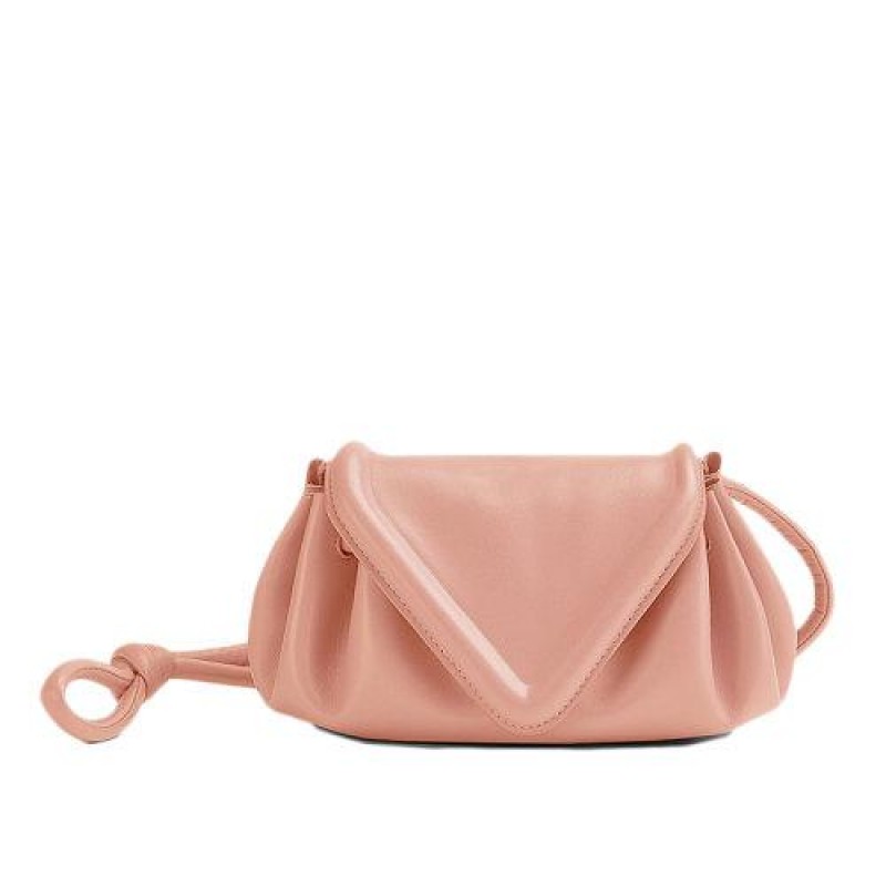【包税】Bottega Veneta/葆蝶家 21新款BEAK系列 女士小号蜜桃粉色小羊皮翻盖单肩斜挎手拿包658521VCP307806