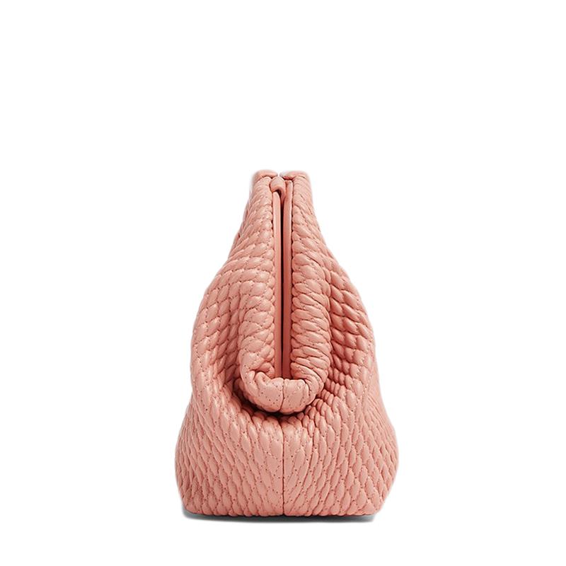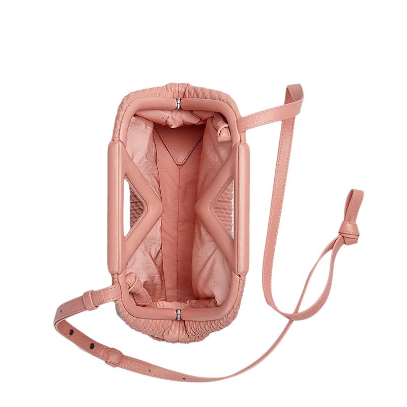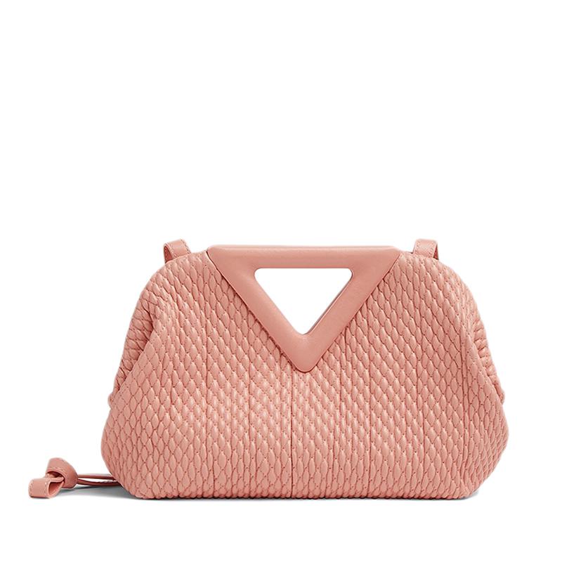【包税】Bottega Veneta/葆蝶家 21新款POINT系列 女士小号蜜桃粉色棱纹小羊皮磁性边框三角形提手单肩斜挎手提包661986V0TB17806