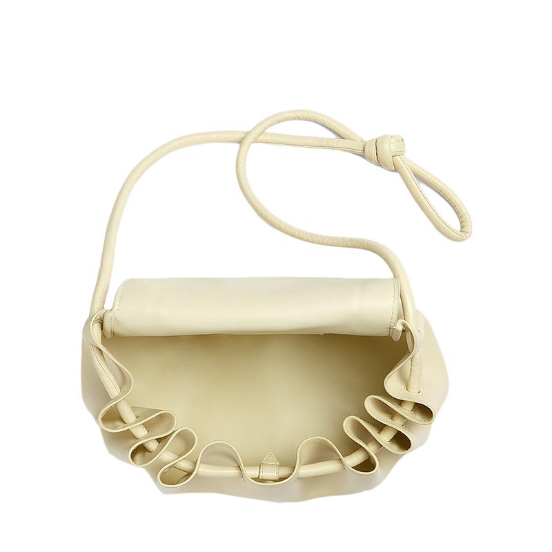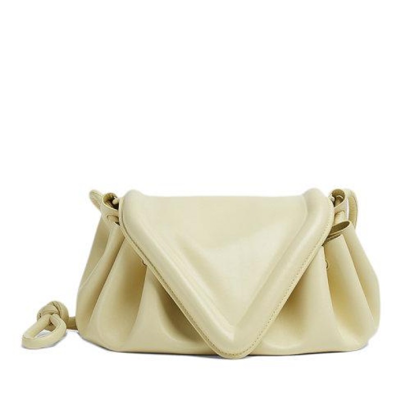 【包税】Bottega Veneta/葆蝶家 21新款BEAK系列 女士中号冰淇淋色小羊皮三角形翻盖单肩斜挎手拿包658523VCP307450