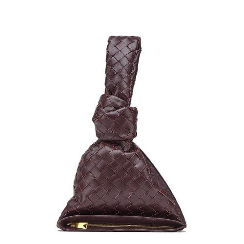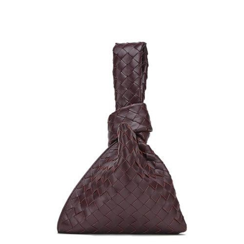 【包税】Bottega Veneta/葆蝶家 2021春夏新款THE TWIST系列 女士迷你葡萄紫色小羊皮格纹编织打结扭扭包手提包652001VCPP05010