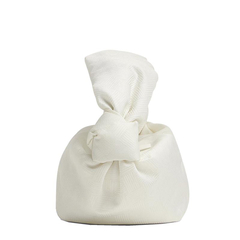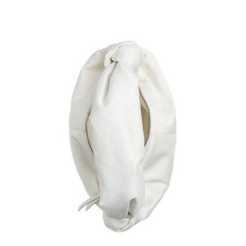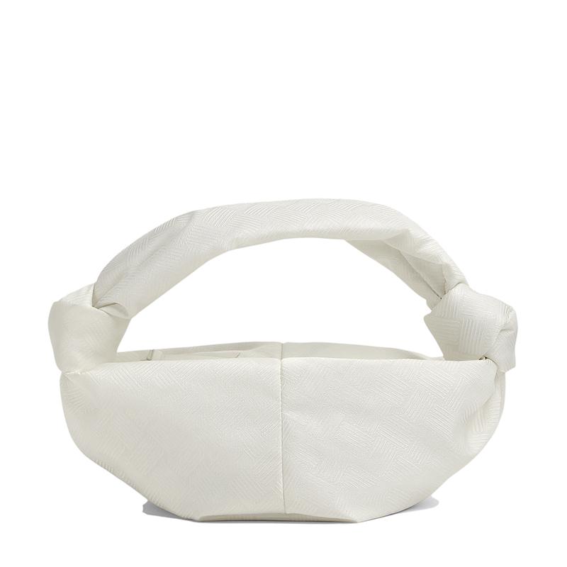 【包税】Bottega Veneta/葆蝶家 21新款DOUBLE KNOT系列 女士白色织物牛皮革拉链打结手提包658049V0T419007