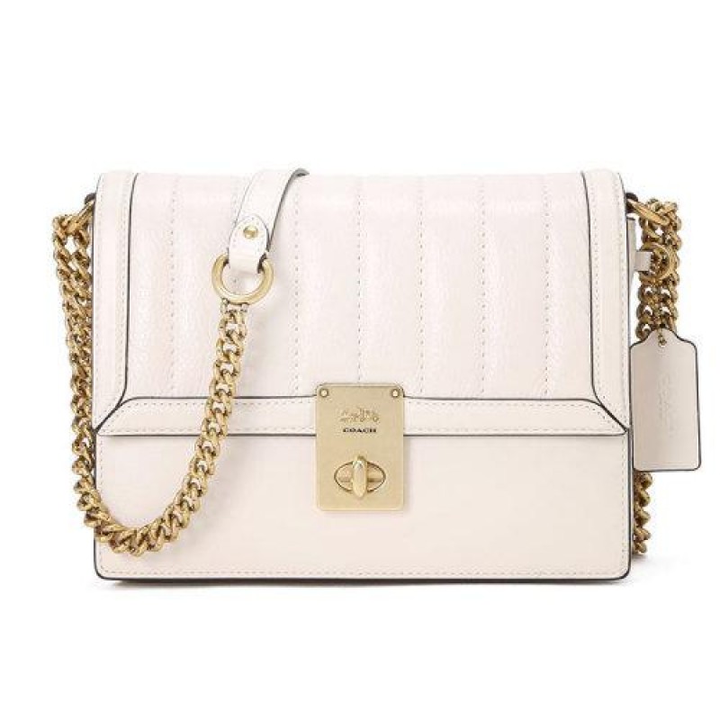 COACH/蔻驰 HUTTON口盖包 单肩包 斜挎包绗缝皮金扣89066 牛皮革