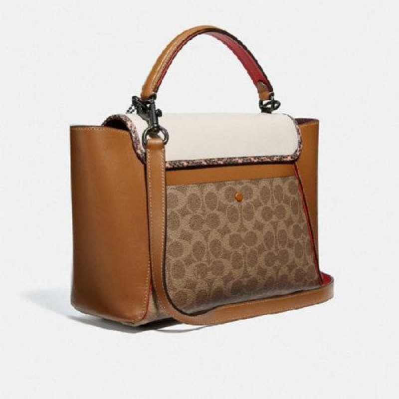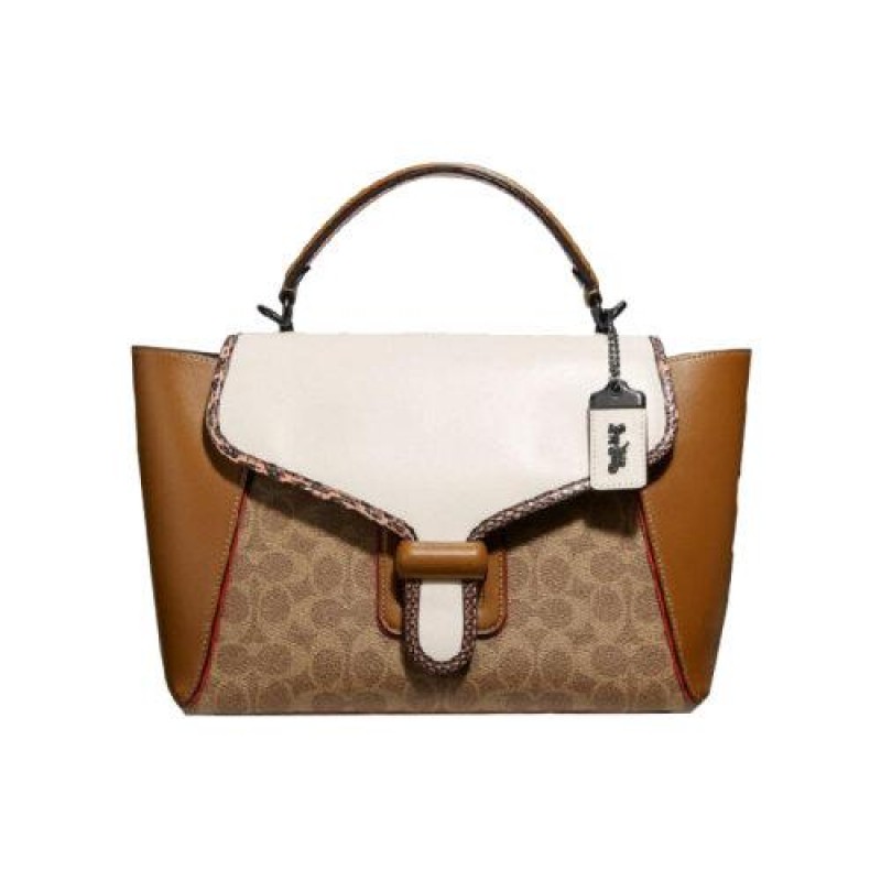 COACH/蔻驰 女士翻盖搭扣手拎包 698 V5OWZ 棕色拼色 $529.9 |