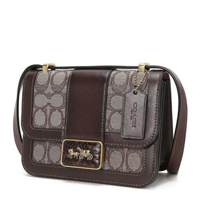 COACH/蔻驰 Alie 口盖包 方扣马车标老花拼皮4616  织物/配皮 预售