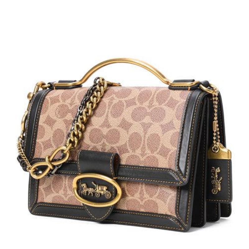 COACH/Coach RILEY Commuter Handbag 22 Carriage Logo Old Flower Spliced Leather 73937 Gold Button Coated Fabric/Cow Leather Pre sale