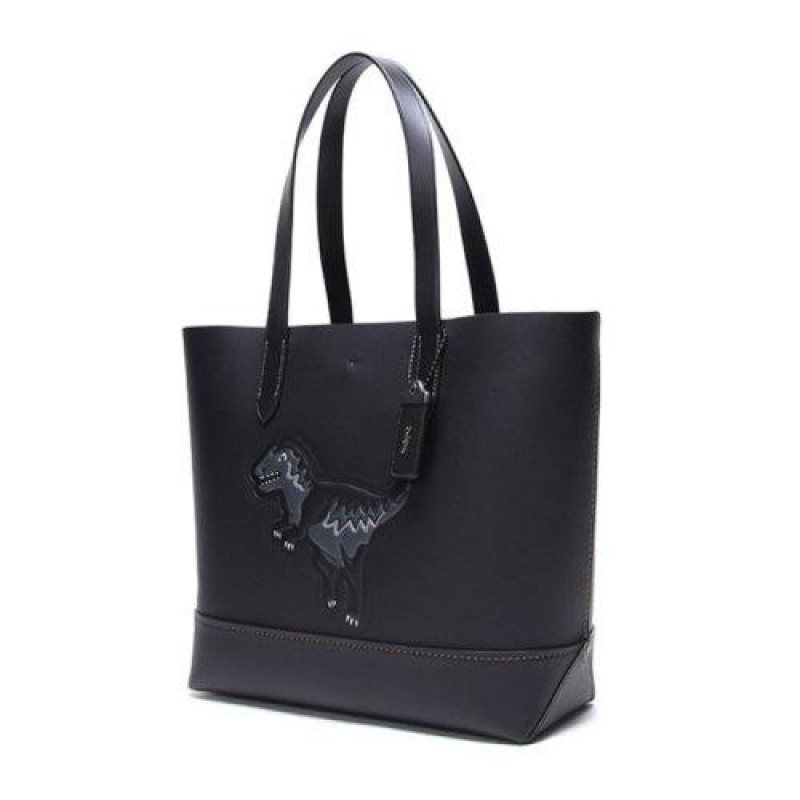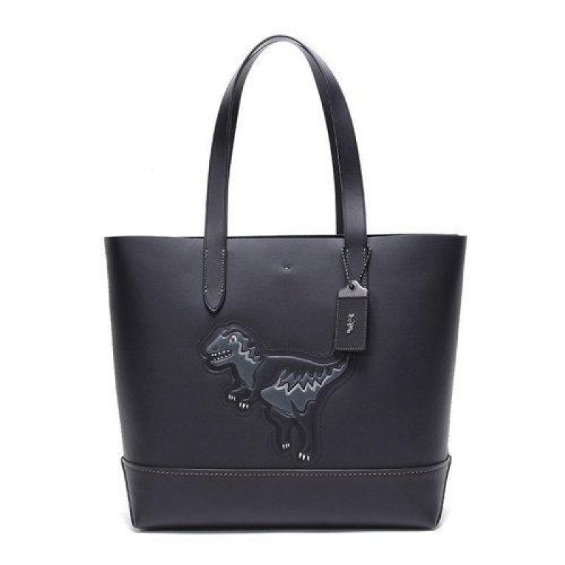 COACH/蔻驰 男士黑色牛皮小恐龙图案开放式包扣钩扣开合单肩包手提包托特包男包 11087-BLACK