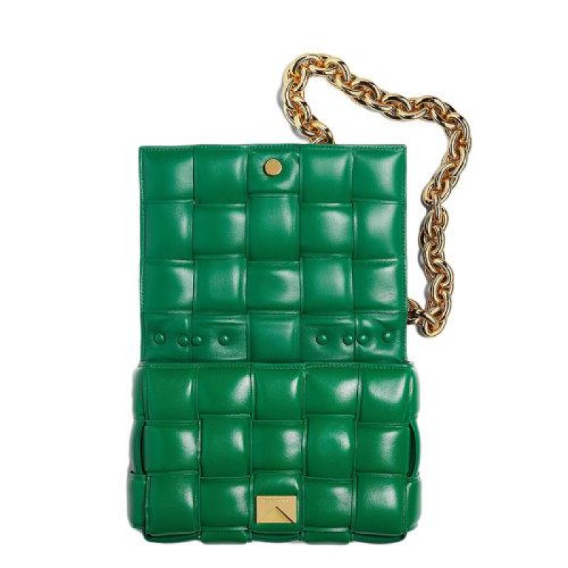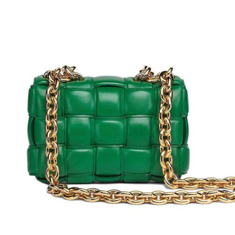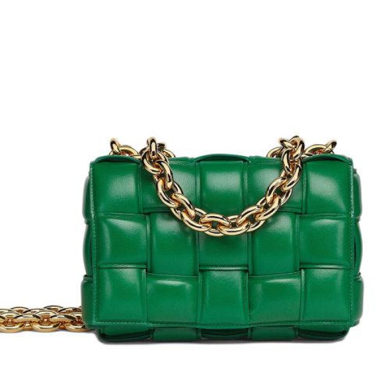 【包税】Bottega Veneta/葆蝶家 经典款CHAIN CASSETTE系列 女士赛车绿色小羊皮编织链条单肩斜挎豆腐包631421VBWZ03104