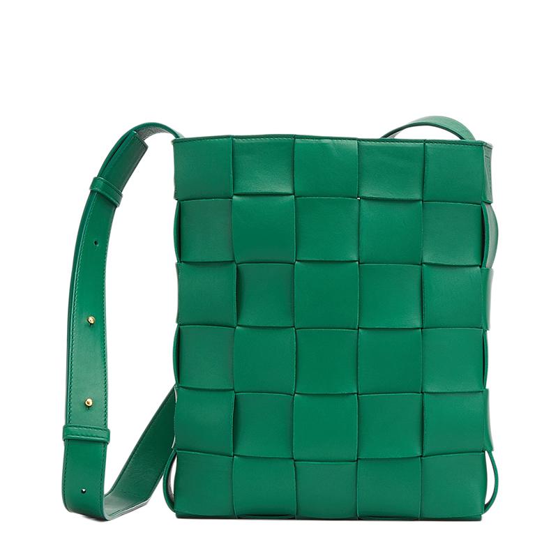 【 Tax included 】 Bottega Veneta/Bottega Veneta 2021 Spring/Summer New Collection CASSETTE Series Green Sheepskin Grid Weaving Postman Shoulder Bag 649601VMAY13186