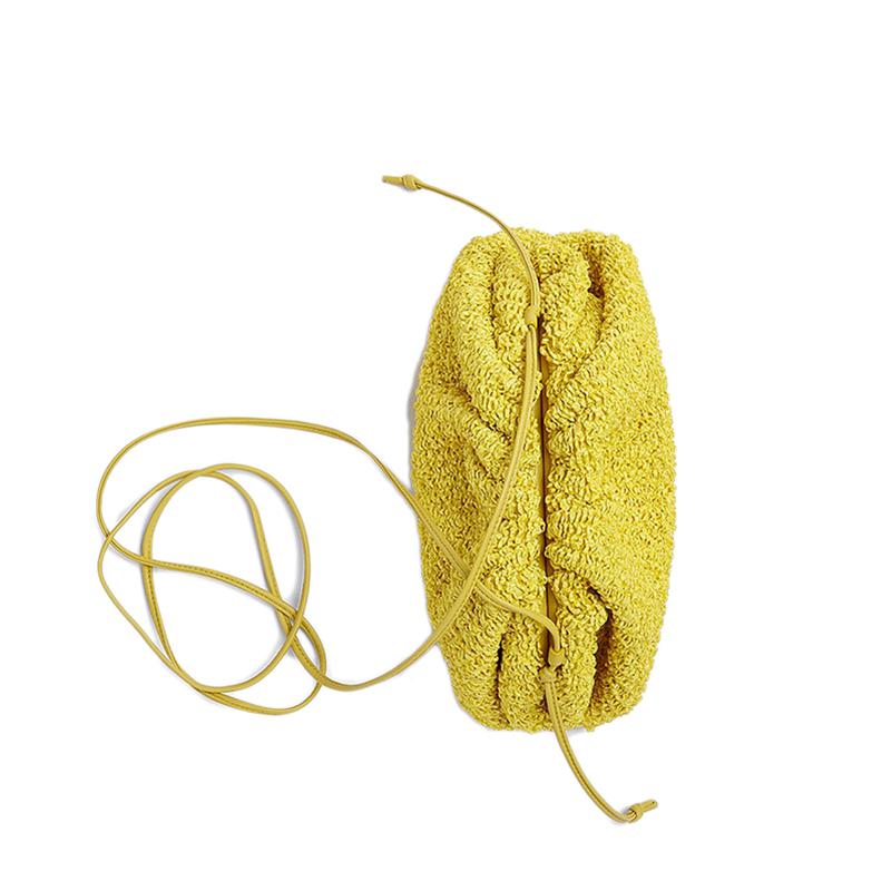 【包税】Bottega Veneta/葆蝶家 21春夏新款POUCH系列 女士迷你黄香李色小牛皮圈绒手拿斜挎云朵包585852V0SR12671