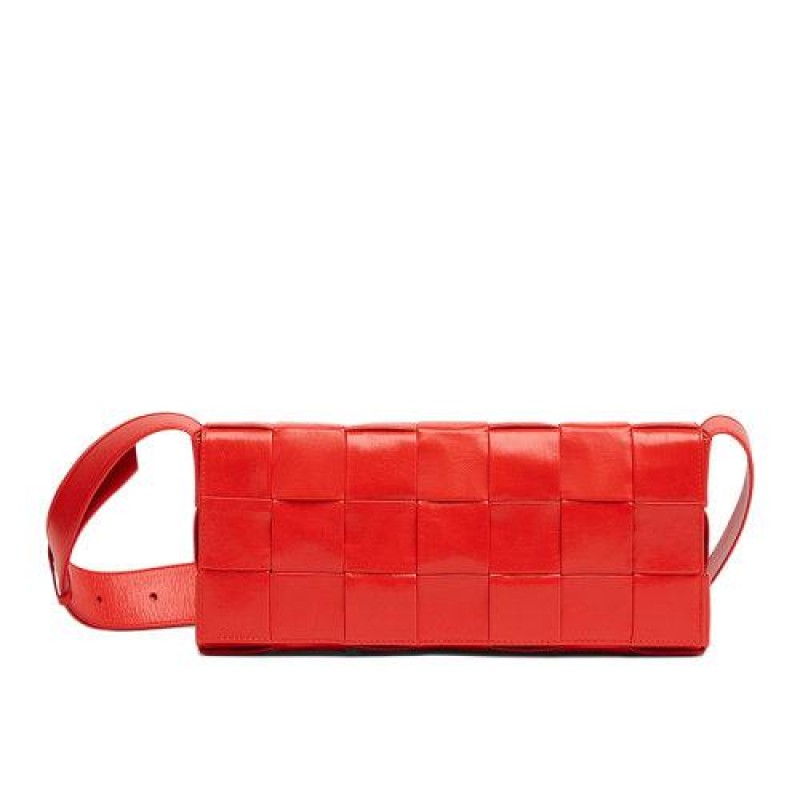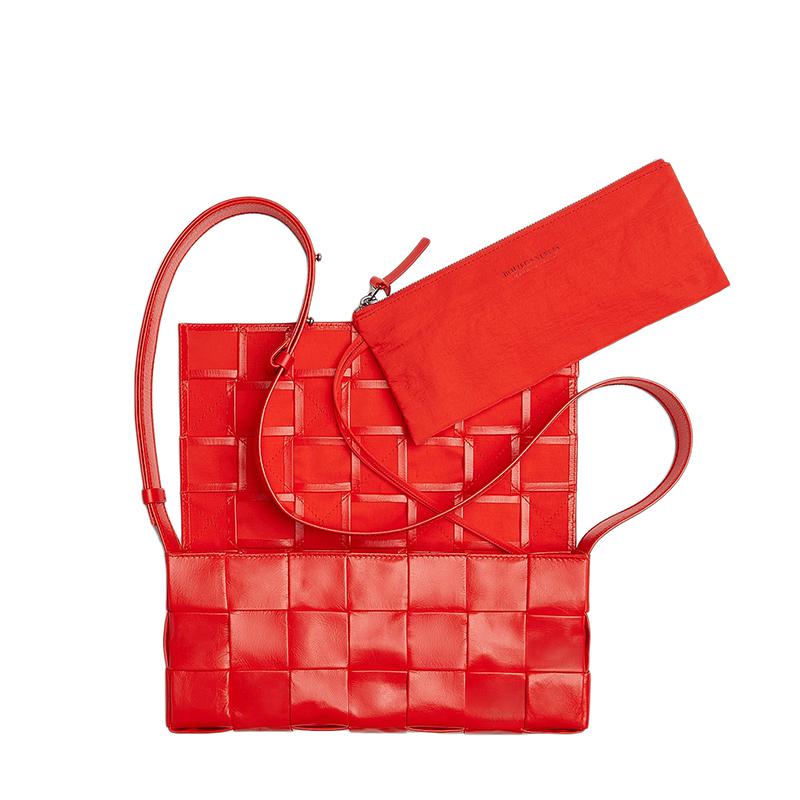 【包税】Bottega Veneta/葆蝶家 经典STRETCH CASSETTE系列 男士番茄色小牛皮编织方形翻盖斜挎包629068VCQ716541