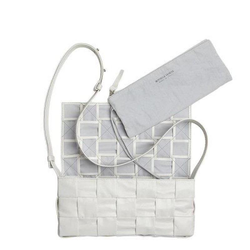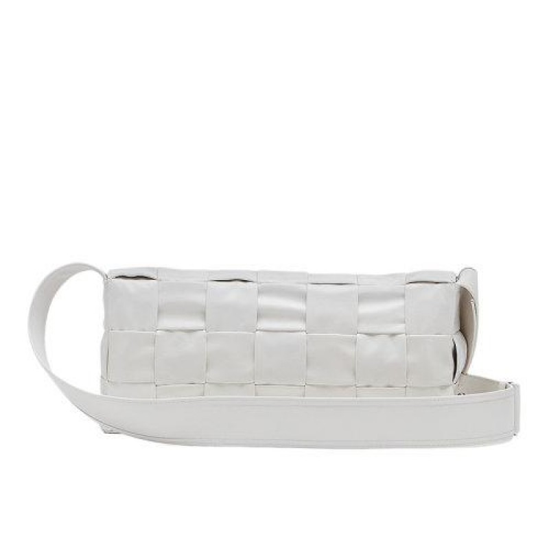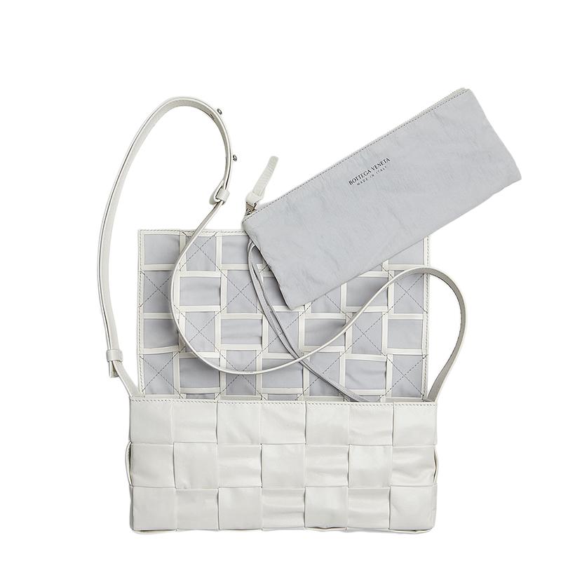 【包税】Bottega Veneta/葆蝶家 经典STRETCH CASSETTE系列 男士白色小牛皮编织方形翻盖斜挎包629068VCQ719005