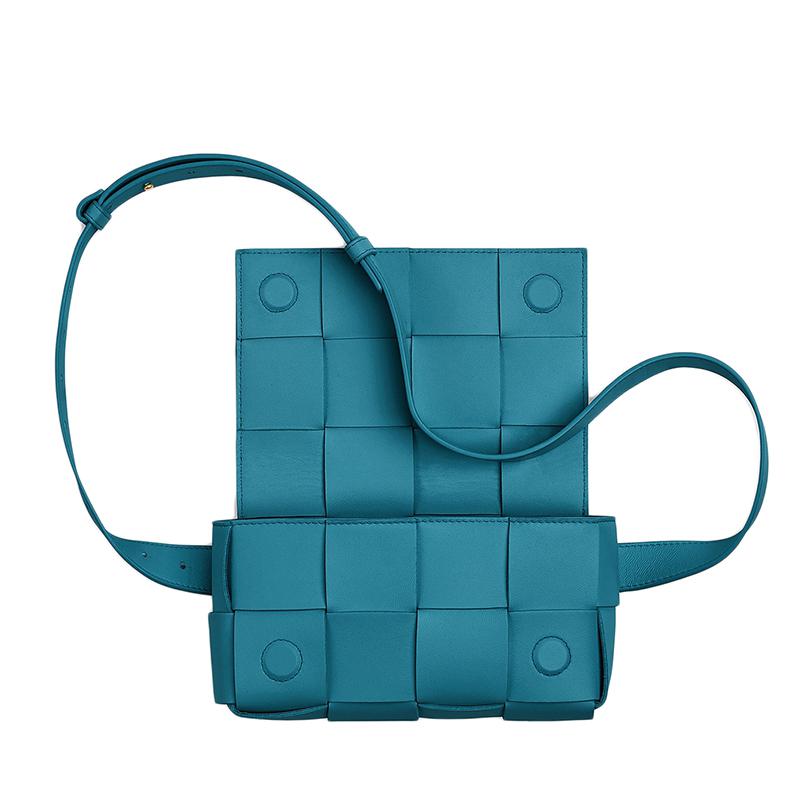 【 Tax included 】 Bottega Veneta/Bottega Veneta 21 new BELT CASSETTE series wild duck green Intrecciato woven lambskin diagonal cross waist bag 668572VMAY13118