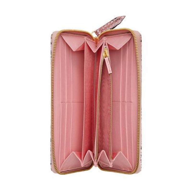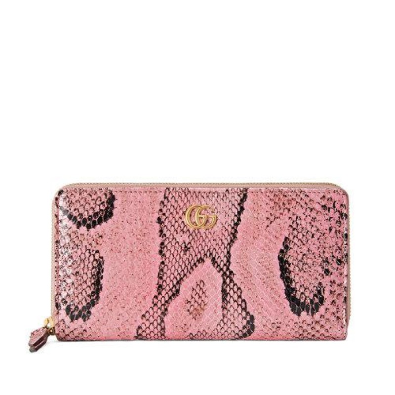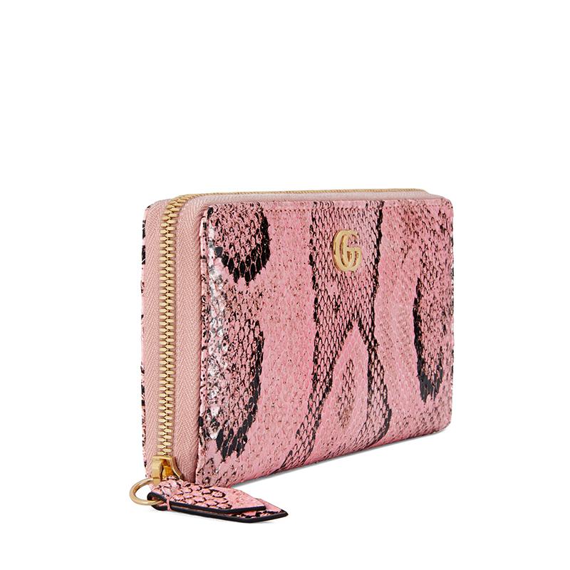 GG Marmont系列采用以珍贵蟒蛇皮设计的拉链钱包丰富。以精致的粉红色调显示,标志性的Double G细节点缀此产品。